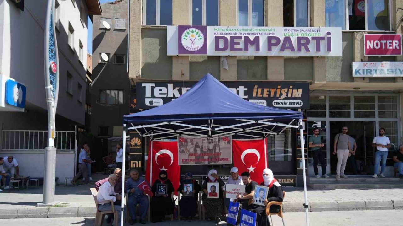Muş’ta, çocuklarının terör örgütü PKK tarafından kaçırıldığını belirten aileler, DEM Parti İl Başkanlığı binası önündeki eylemlerini bu hafta da devam ettirdi.