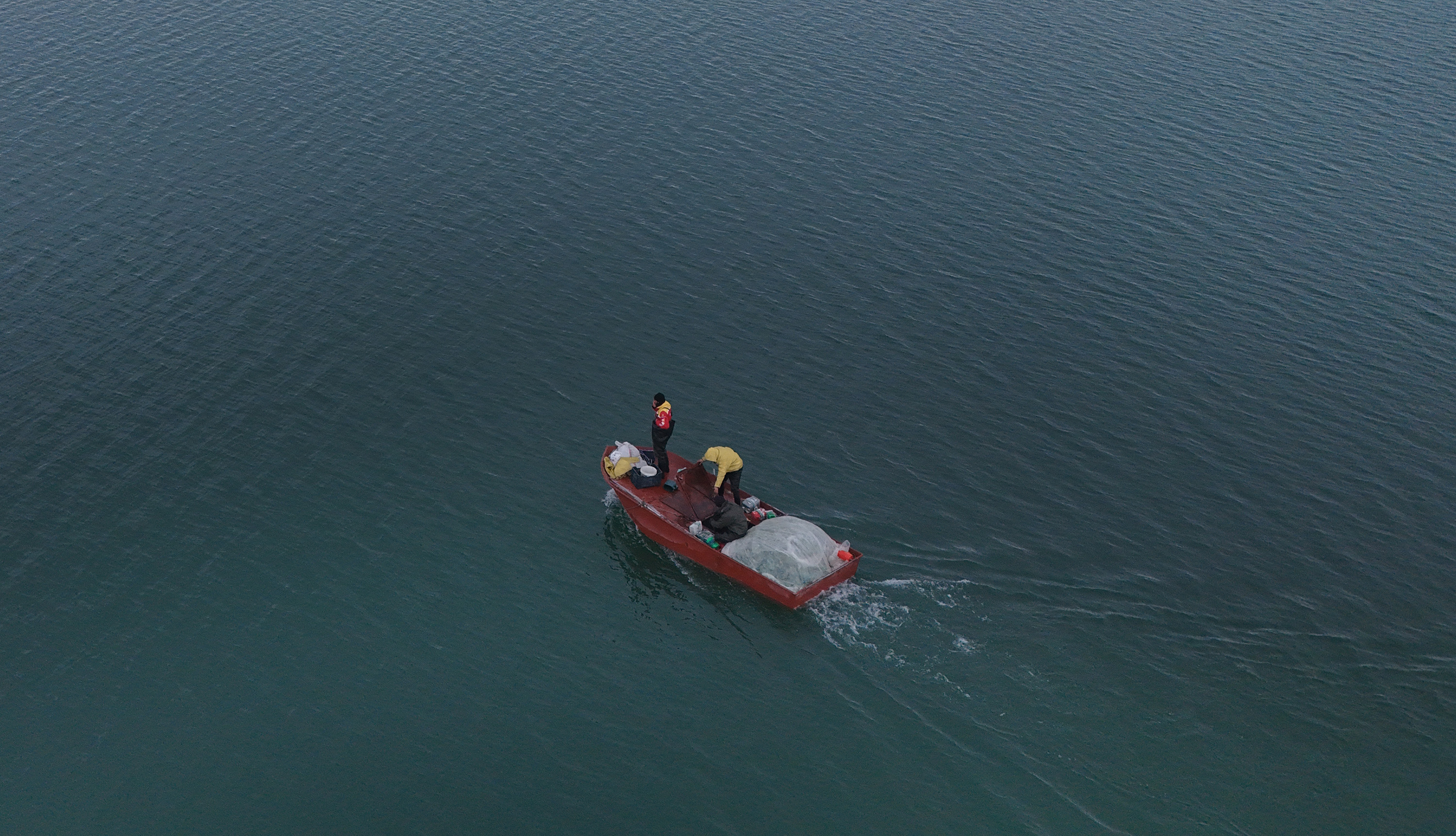 Göl üzerinde ilerleyen balıkçı tekneleri ile teknelerdeki balıkçıların avlanma anları dron ile havadan görüntülendi. Ortaya çıkan görüntüler, kışın etkisini hissettirmeye başladığı Nazik Gölü’nde hem görsel bir şölen sundu hem de balıkçıların zorlu mesaisini gözler önüne serdi.