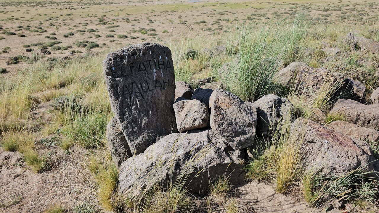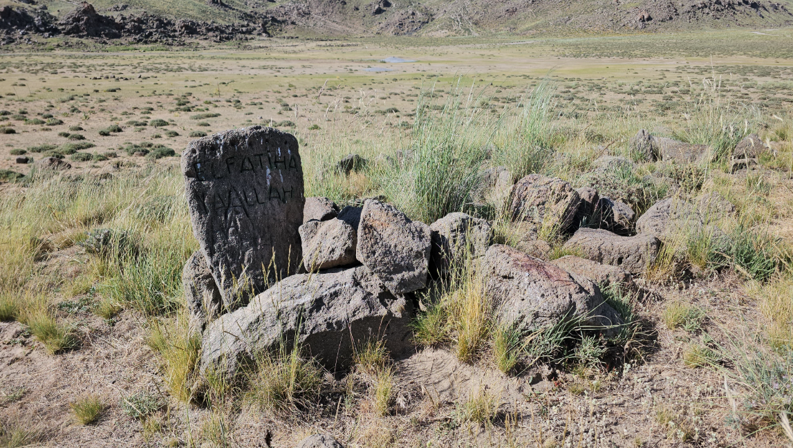 Bitlis’te Nemrut Dağı eteklerinde yer alan, mezar taşını andıran ve üzerinde “EL FATIHA” ile “ALLAH” yazılı bir taş, vatandaşların ilgisini çekiyor. Taşın ön kısmında ve çevresinde rastgele yığılmış iri kaya parçaları dikkat çekerken, bazı vatandaşlar buranın bir mezar olduğunu düşünüp dua ediyor, bazıları ise bunun doğal taş yığınından ibaret olduğunu savunuyor.