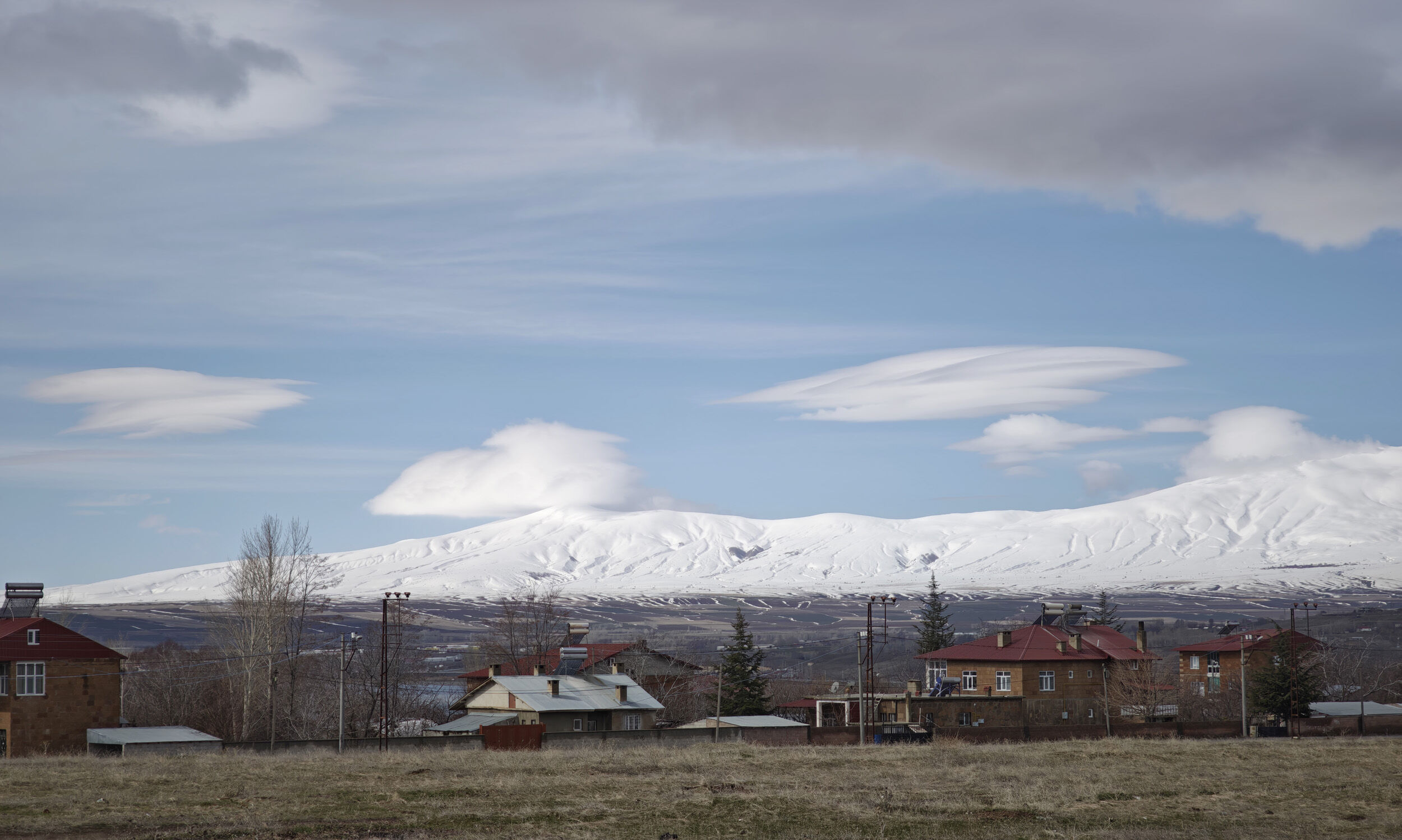Özellikle açık havada belirgin şekilde görülen ve halk arasında “uçan daire bulutları” olarak da bilinen mercek bulutları, Nemrut Dağı’nın heybetli siluetiyle birleşince görsel şölen oluşturdu. Dağın zirvesinde oluşan bu doğa olayı, bölgenin doğal güzelliğini bir kez daha gözler önüne serdi.
