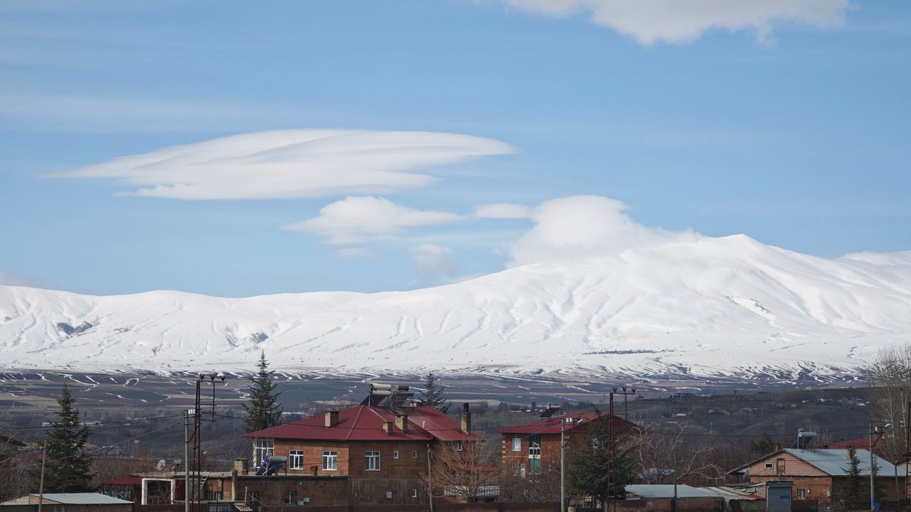 Türkiye’nin önemli doğal güzellikleri arasında yer alan ve her mevsim ayrı bir güzelliğe bürünen Nemrut Dağı, bu kez zirvesinde oluşan dikkat çekici bulut yapısıyla hayran bıraktı. Ahlat yönünden çekilen fotoğraf karelerinde, dağın karla kaplı zirvesi üzerinde beliren mercek bulutları eşsiz manzaralar sundu.