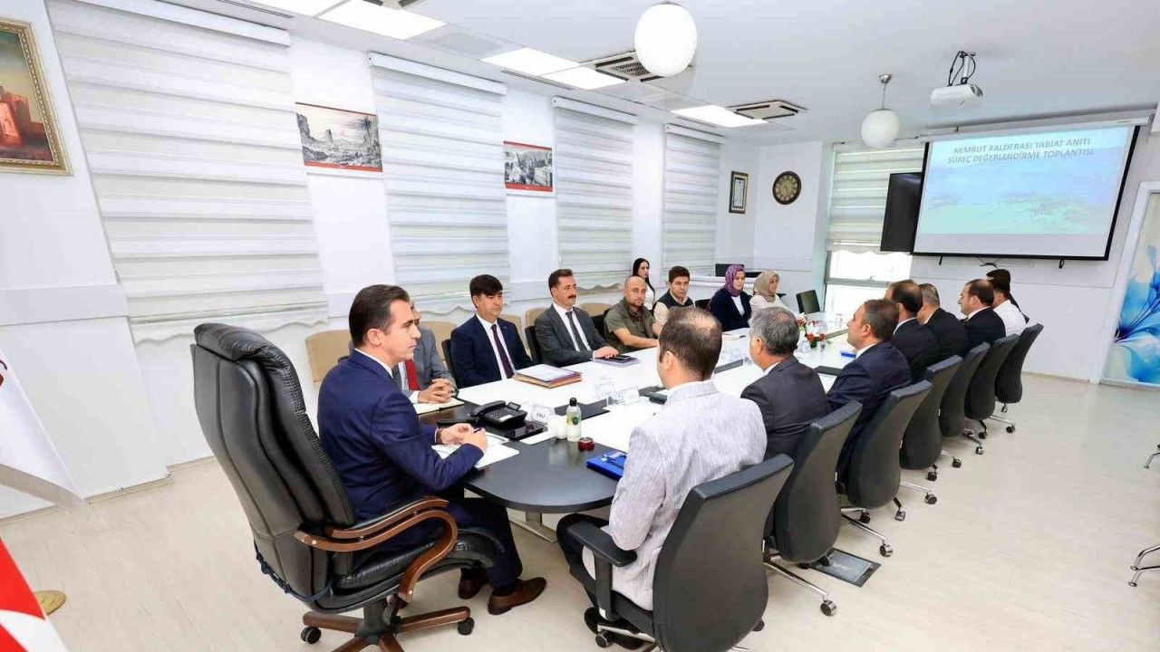 Bitlis Valisi Ahmet Karakaya başkanlığında Nemrut Kalderası ve Krater Gölü Tabiat Anıtı süreç değerlendirme toplantısı gerçekleştirildi. Toplantıda, Nemrut Kalderası Krater Gölü’nün tabiat anıtı olarak doğal yapısının korunarak sürdürülebilir şekilde vatandaşların kullanımına sunulması görüşülerek; ulaşım, altyapı, temizlik ve güvenlik önlemlerinin yeniden ele alınması gibi başlıklar da değerlendirildi.