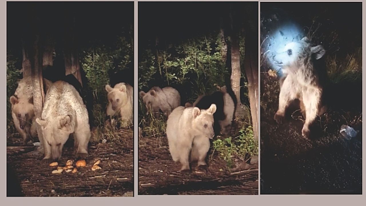 Bitlis’in Tatvan, Ahlat ve Güroymak ilçeleri arasında yer alan Nemrut Krater Gölü’nde yaşayan boz ayılar bu sefer sürü halinde görüntülendi. 2 bin 250 rakımlı Nemrut Krater Gölü, doğal güzelliklerinin yanı sıra zengin florasıyla da birçok canlıya ev sahipliği yapıyor. Özellikle krater gölü çevresinde yaşamlarını sürdüren bozayılar, bölgeye giden vatandaşların ve doğaseverlerin ilgi odağı haline geliyor. Boz ayıların beslenmesine yardımcı olan vatandaşlar kimi zaman ilginç görüntüler oluşturuyor. Ahlat’tan gelip Nemrut Krater Gölü'nde yaşayan ayıları ziyaret eden Asım Araboğa isimli vatandaş, bu sefer boz ayı sürüsüyle karşılaştı. Anne ayılar ve yavrulardan oluşan ayı sürü şaşkınlık yarattı. Hayvansever Asım Araboğa’da gece vakti yem aramaya çıkan ayı sürüsünü eliyle besledi. Araboğa aracının yanına gelen yavru ayıya da şeker vermeyi ihmal etmedi.