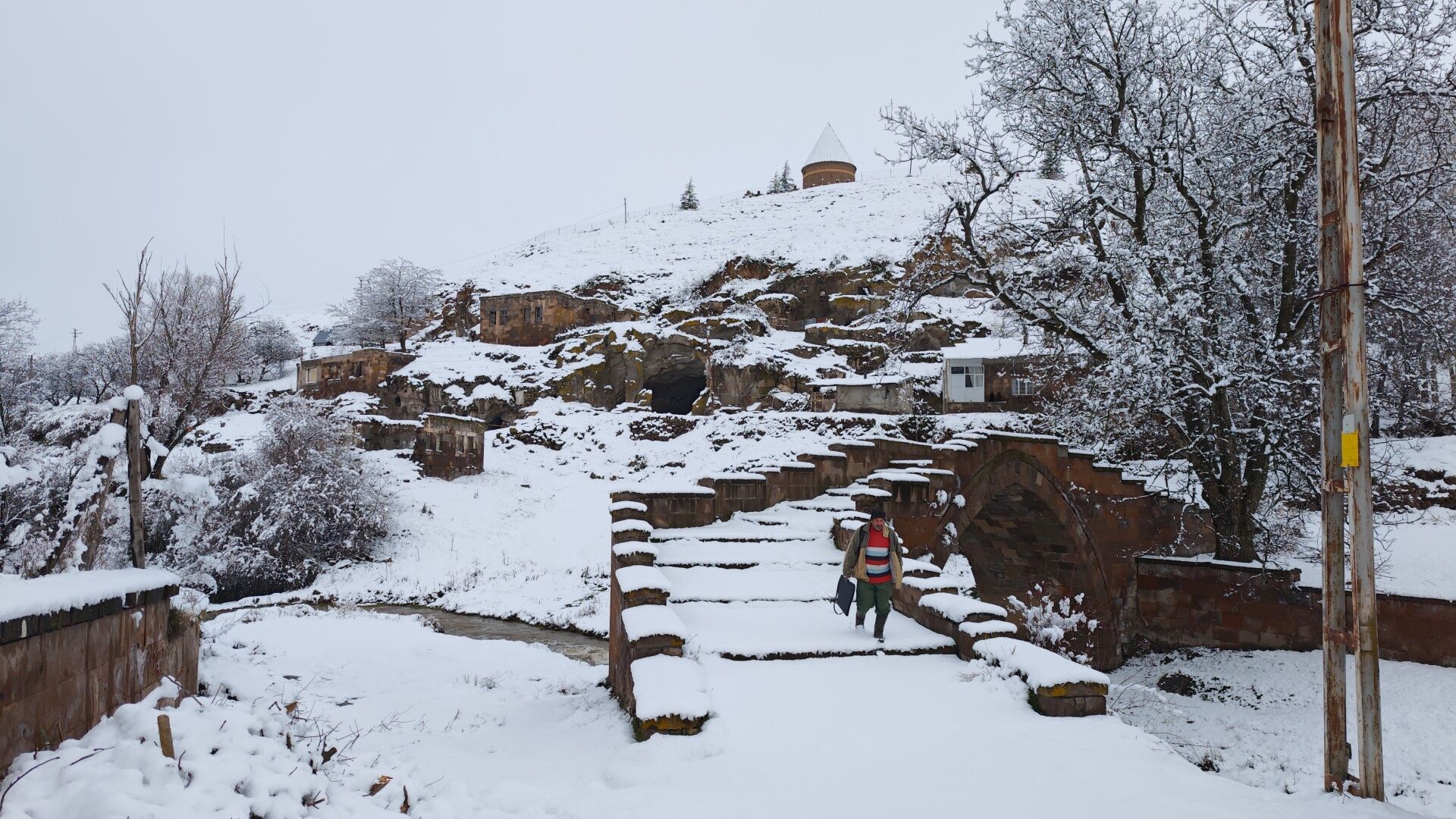 Bitlis’in Ahlat ilçesinde etkili olan nisan karı, tarihi mekanlarda kartpostallık görüntüler oluşturdu. İlkbahar mevsimine girilmesine rağmen nisan ayında Bitlis’te etkili olan kar yağışı hayatı olumsuz etkilerken, tarihi bir kent olan Ahlat ilçesindeki mekanlar ise beyaz örtüyle farklı bir güzelliğine büründü.