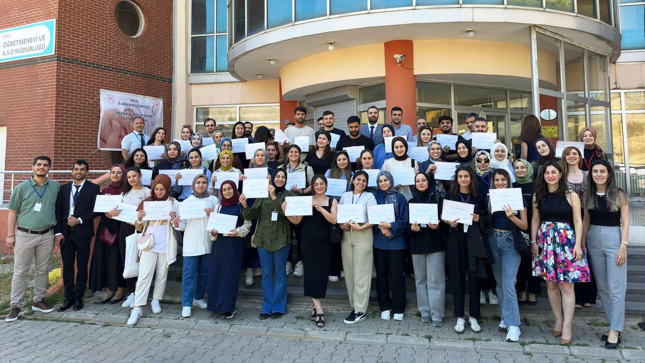 Bitlis İl Sağlık Müdürlüğü tarafından düzenlenen Yenidoğan Canlandırma Programı (NRP) eğitimi başarıyla tamamlayan 48 sağlık çalışanına sertifikalarını aldı. Alanında uzman 8 Yenidoğan Canlandırma eğitmeni tarafından verilen eğitimlerde 3 uzman hekim, 2 pratisyen hekim, 6 ATT, 2 anestezi teknikeri, 15 hemşire ve 20 ebe olmak üzere toplamda 48 sağlık çalışanı teorik ve pratik sınavları başarıyla geçerek sertifikalarını aldı. Eğitimlerini başarıyla tamamlayan sağlık çalışanlarına sertifikalarını İl Sağlık Müdürü Uz. Dr. Gökhan Güzeltaş verdi. Güzeltaş programla birlikte il genelinde yenidoğan acil müdahale kapasitesinin güçlendiğini ve sağlık çalışanlarının artık uluslararası standartlarda hizmet verebilecek niteliğe ulaştığını belirtti.