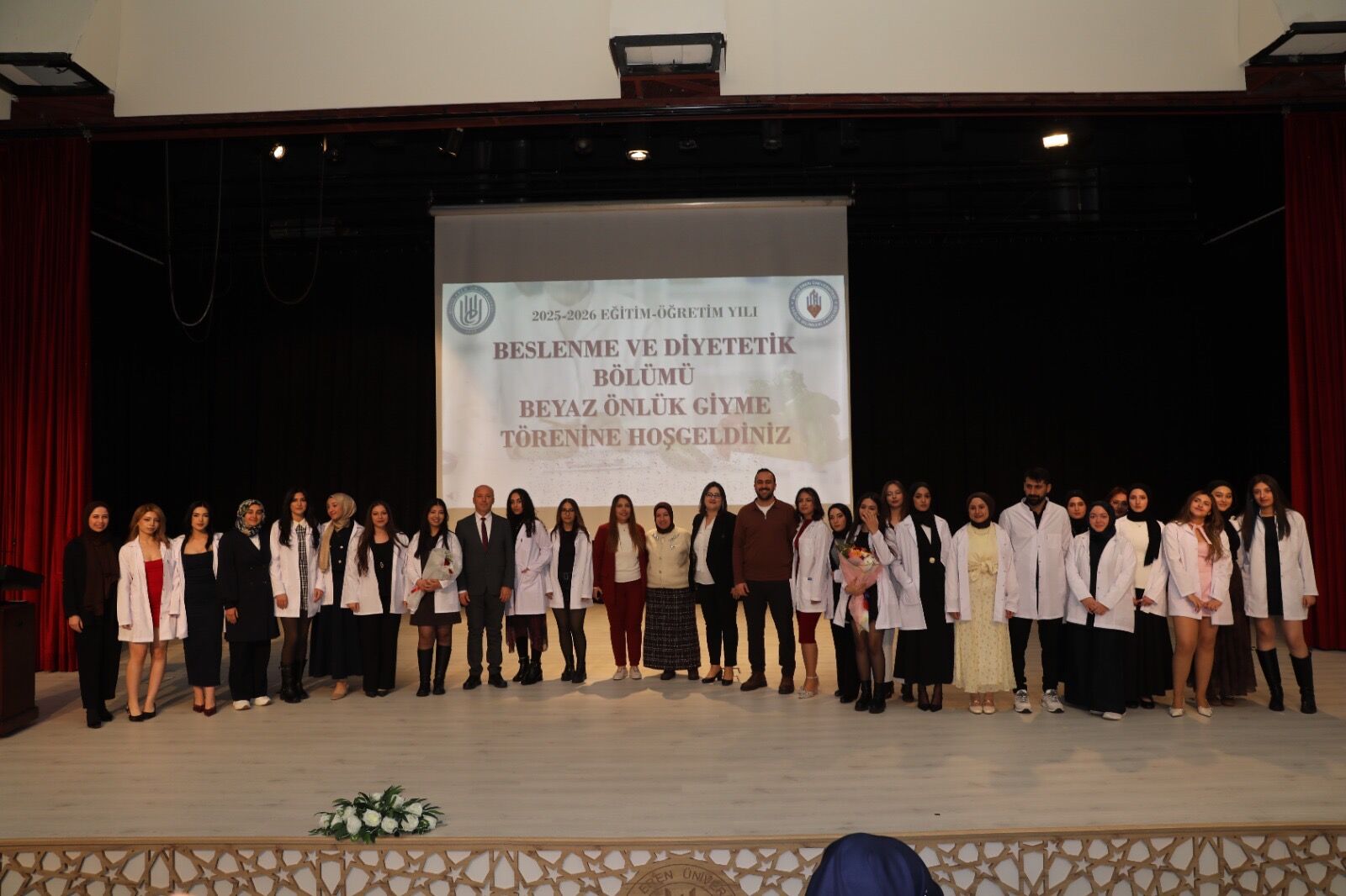 Bitlis Eren Üniversitesi Rektörü Prof. Dr. Necmettin Elmastaş ise selamlama konuşmasında, öğrencilerin beyaz önlükleriyle sağlık hizmetlerine ilk adımı attıklarını ifade ederek üniversite olarak her zaman öğrencilerin yanında olduklarını vurguladı. Rektör Elmastaş konuşmasında, bu tür törenlerin yalnızca sembolik bir anlam taşımadığını; aynı zamanda öğrencilerin üstlenecekleri sorumlulukların bilincine varmaları açısından önemli bir dönüm noktası olduğunu belirtti. Tören kapsamında öğrenciler, sembolik olarak beyaz önlüklerini Rektör Elmastaş ve akademisyenlerin elinden giydi. Ayrıca bölümlere özgü mesleki sembollerin takdimiyle program anlam kazandı. Diyetetik öğrencilerine beyaz önlükleri takdim edilirken, ebelik öğrencilerine fetoskop, fizyoterapi öğrencilerine gonyometre ve hemşirelik öğrencilerine stetoskop verildi.