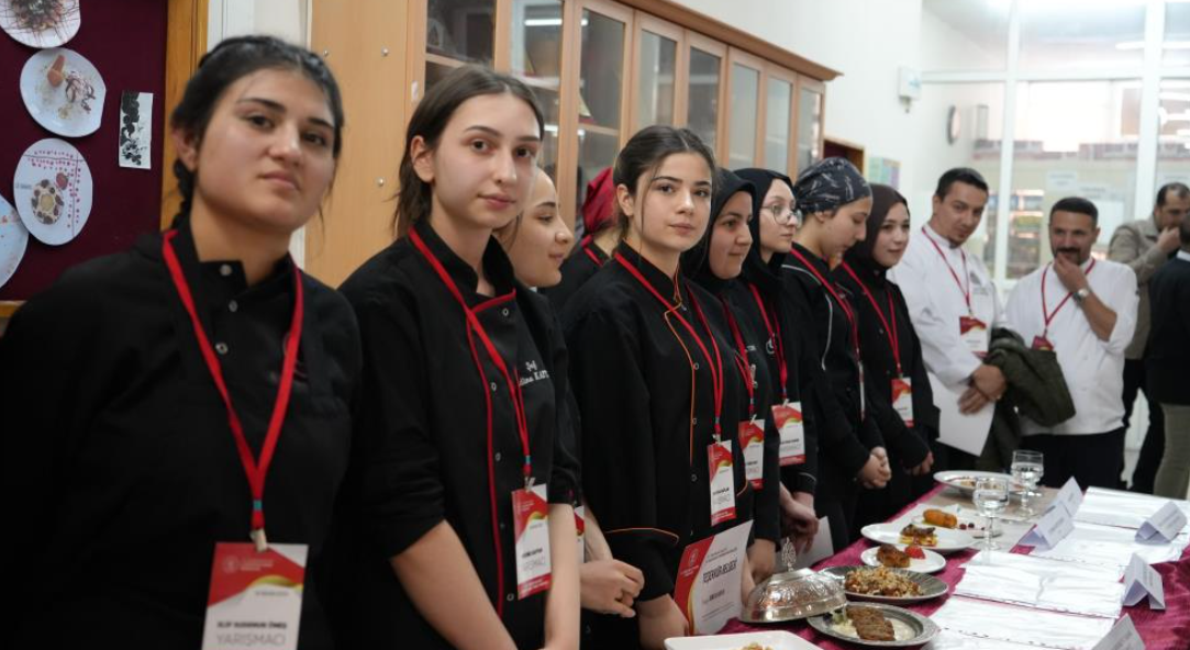 Erzurum Dedeman Turizm Mesleki ve Teknik Anadolu Lisesinde yapılan yarışmada meslek liselerinde öğrenim gören yiyecek ve içecek hizmetleri öğrencileri hünerlerini gösterdiler.