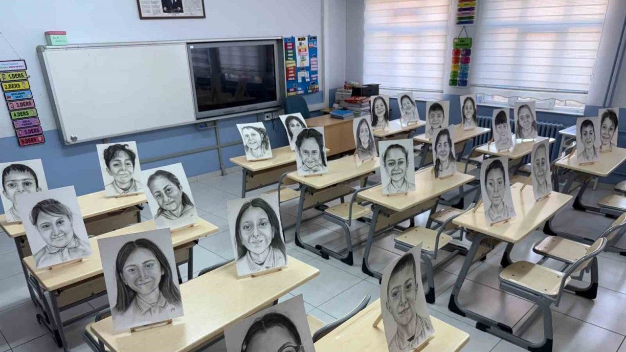 Atatürk İlkokulu’nda sınıf öğretmeni olan Ahmet Mesut Yücel, öğrencilerine bu yıl karne hediyesi olarak sadece bir kâğıt değil, bir ömür boyu unutamayacakları bir hatıra verdi. Her bir öğrencisinin kara kalem portresini çalıştı. Öğrencilerden kimi hayretle, kimi gözleri dolarak hediyelerini aldı.