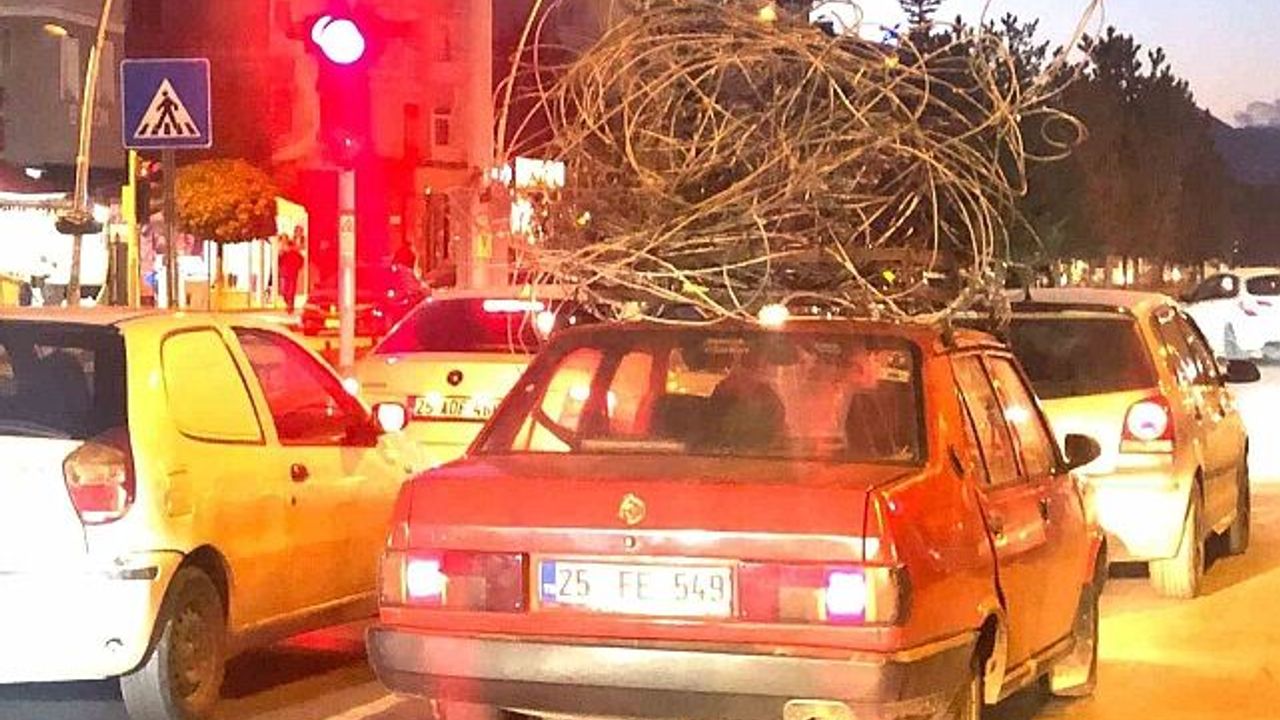 Erzurum'un Aziziye ilçesinde otomobilinin tavanına yüklediği demir yığını ile trafikte ilerleyen sürücü görenleri hayrete düşürdü.