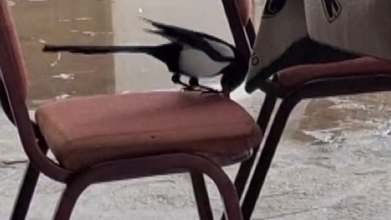 Köyde beslenilen köpeklerin mamasını, adeta sincap gibi ağzına dolduran saksağan, mamaları saklamak için oldukça ilginç bir yer buldu. Kahvenin dışarıda kalan sandalyelerinin içi.