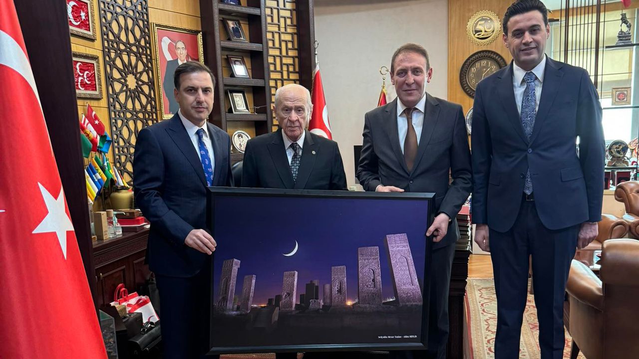 Milliyetçi Hareket Partisi Genel Başkan Başdanışmanı, MYK Üyesi ve Fetih ve Kök: Ahlat/Malazgirt Çalışmaları Enstitüsü Başkanı Prof. Dr. Muhammet Hanifi Macit, Enstitü çalışmaları kapsamında MHP Lideri Devlet Bahçeli’ye anlamlı bir ziyarette bulundu. Ziyarete Fetih ve Kök: Ahlat/Malazgirt Çalışmaları Enstitüsü Başkan Yardımcısı MHP MYK Üyesi Şahin Kartal ve diğer başkan yardımcısı Dr. Av.Levent Çağlancı’da eşlik etti. Ziyaret sırasında, fotoğraf sanatçısı Özkan Olcay tarafından çekilen ve ödüle layık görülen “Selçuklu Mezar Taşları ve Hilal” adlı fotoğraf, Prof. Dr. Macit tarafından MHP Lideri Devlet Bahçeli’ye takdim edildi.