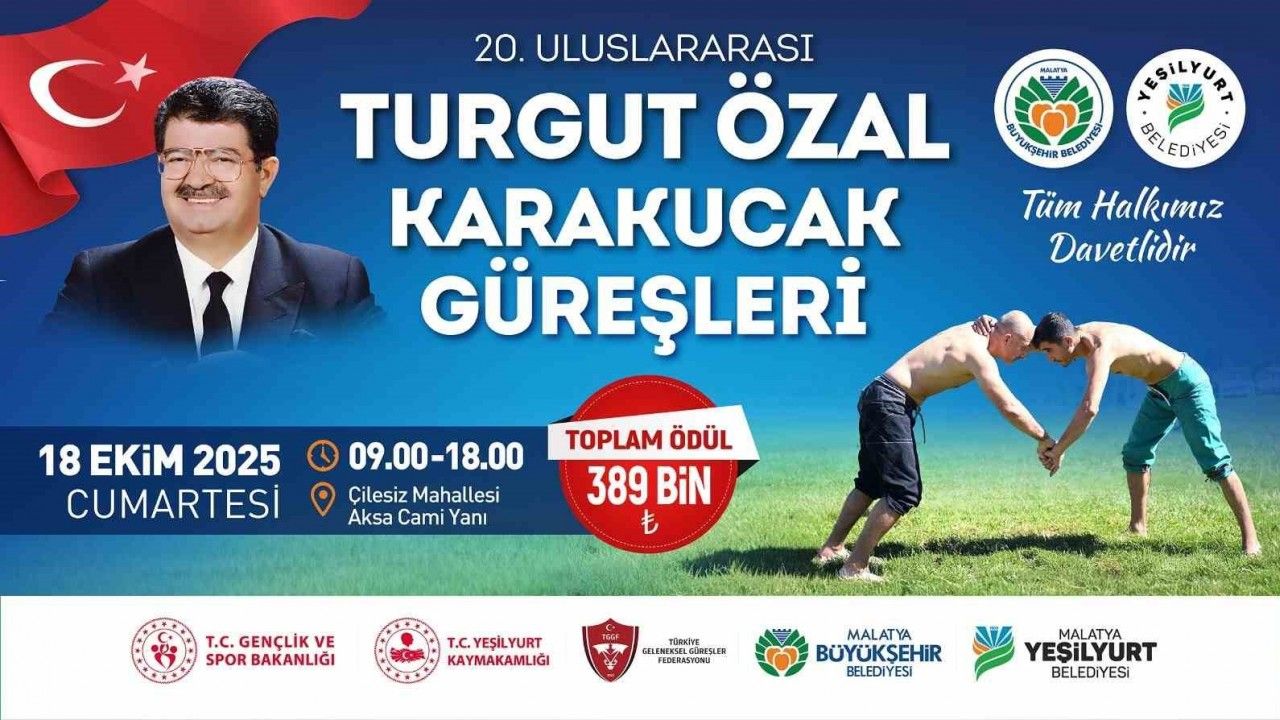 Malatyalı 8. Cumhurbaşkanı merhum Turgut Özal’ın adını taşıyan ve Türkiye’nin sayılı karakucak güreşlerinden biri olan organizasyon, her yıl olduğu gibi bu yıl da büyük bir heyecana sahne olacak. Sporseverlerin yoğun ilgi göstermesi beklenen güreşler, Gençlik ve Spor Bakanlığı, Yeşilyurt Kaymakamlığı ve Türkiye Geleneksel Güreşler Federasyonu destekleriyle düzenlenecek.