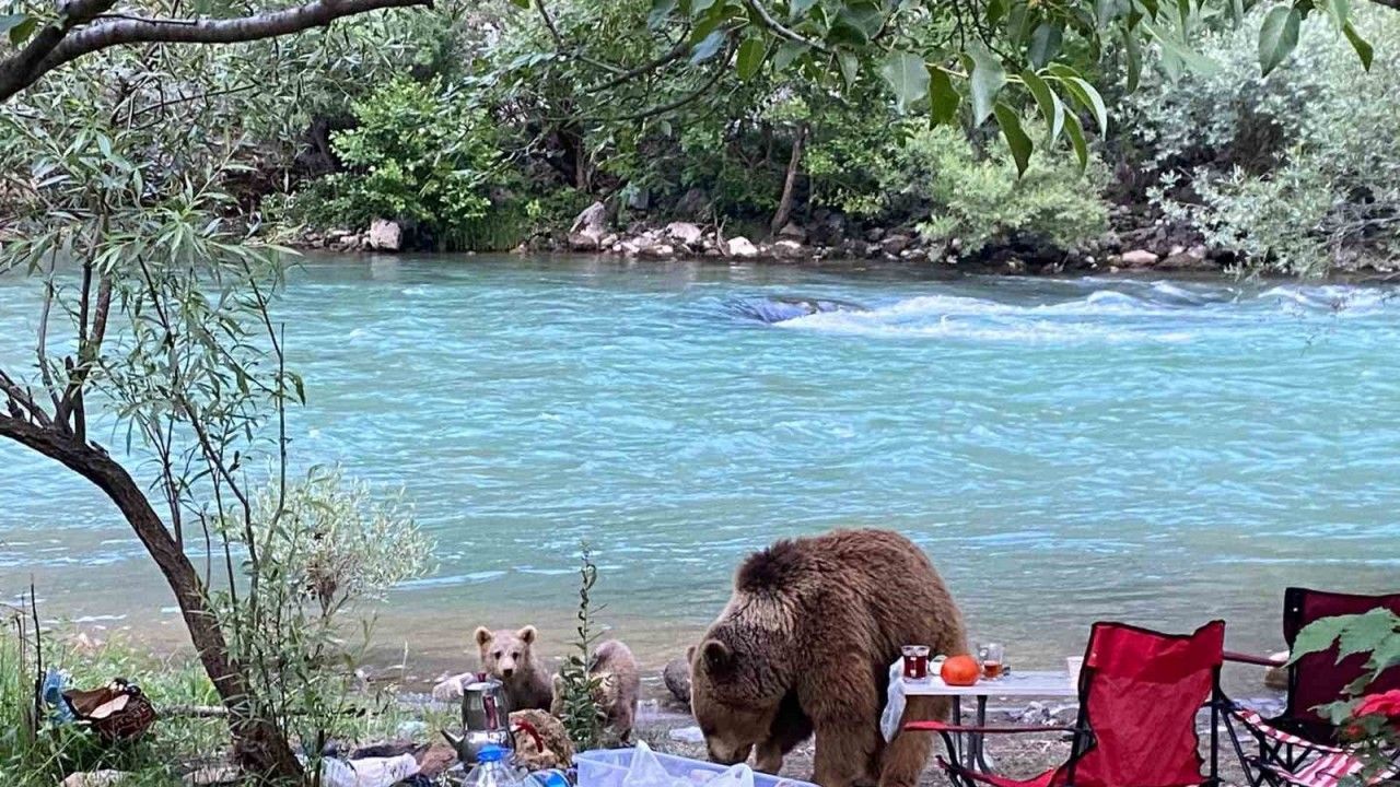 Tunceli’nin Munzur Vadisi’nde anne ayı ve yavruları piknik sofrasına konuk oldu. Tunceli’nin doğal güzellikleriyle ünlü Munzur Vadisi’nde piknik yapan bir aile, unutulmaz bir an yaşadı. Vadi kenarında kurdukları sofrada dinlenen aile, bir anda ortaya çıkan anne ayı ve iki yavrusuyla karşılaştı. Doğal yaşamın iç içe geçtiği bölgede yaşanan olay cep telefonu kamerasıyla saniye saniye kaydedildi.