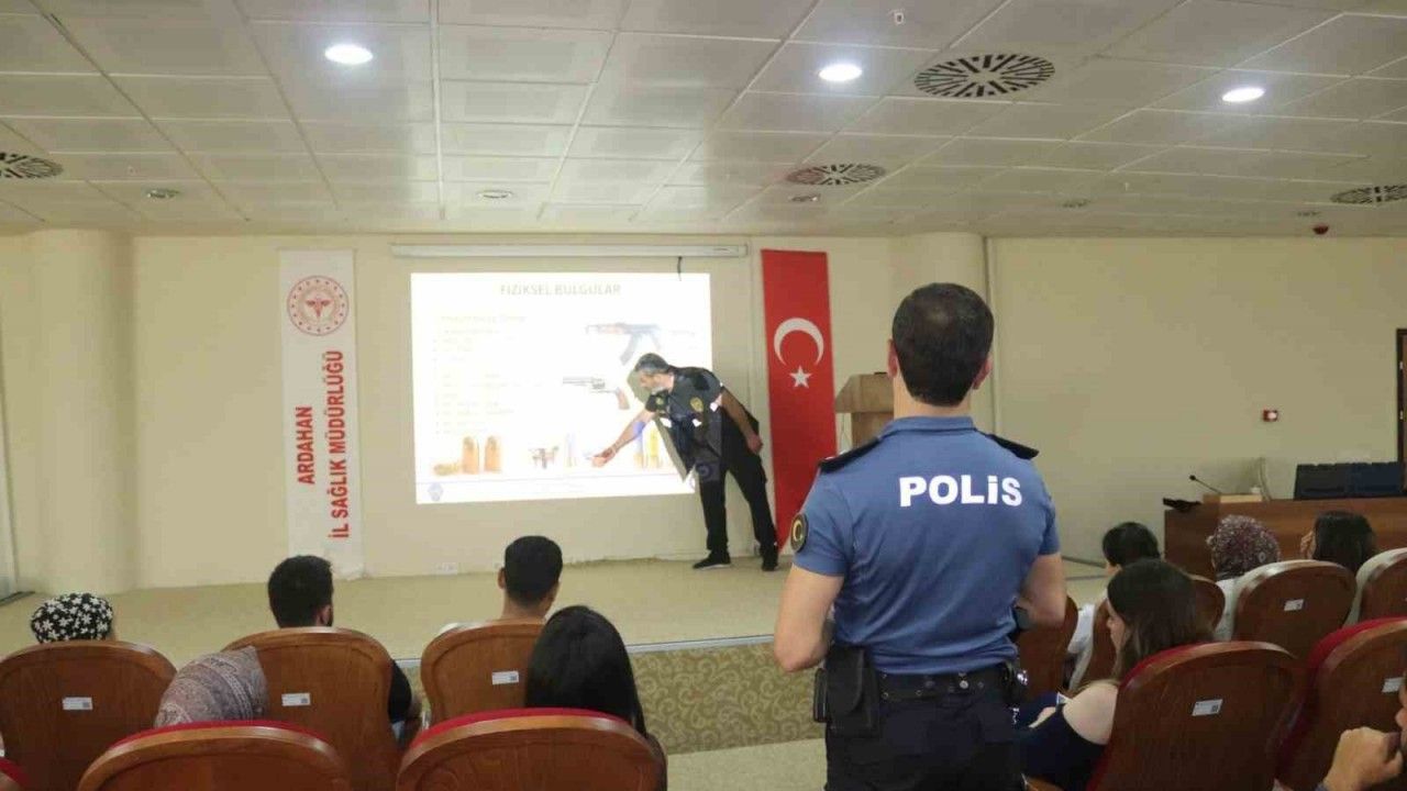 Ardahan’da, polis tarafından acil sağlık hizmetleri personellerine ‘Adli Vakalarda Maddi Delillere Yaklaşım Eğitimi’ verdi.