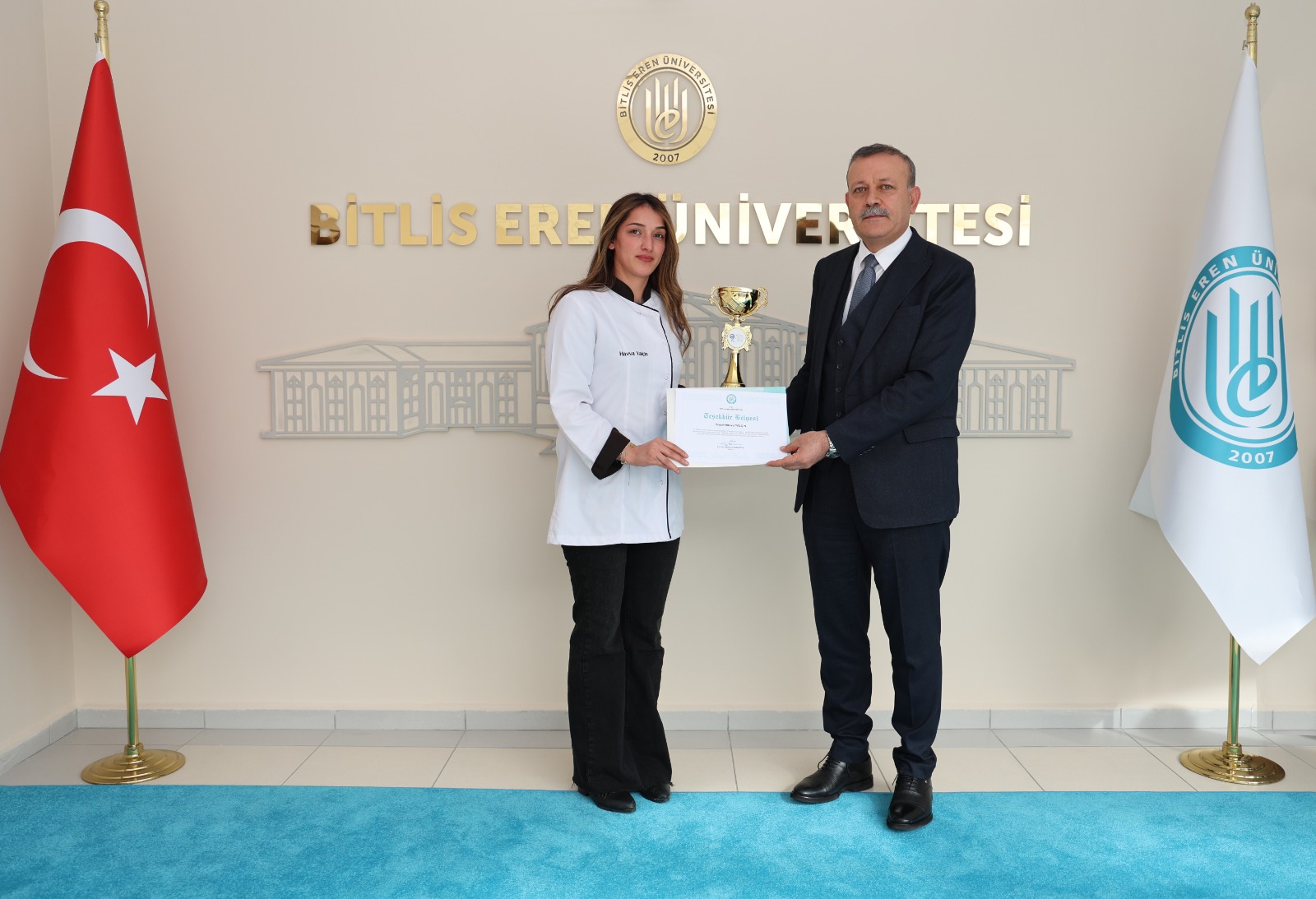 Bitlis Eren Üniversitesi Kanık Uygulamalı Bilimler Yüksekokulu Gastronomi ve Mutfak Sanatları Bölümü öğrencileri, Adana’da düzenlenen 9. Uluslararası Adana Lezzet Festivali kapsamında gerçekleştirilen “Üniversiteli Genç Şefler” yarışmasında elde ettikleri derecelerle Bitlis Eren Üniversitesi’ni başarıyla temsil etti.