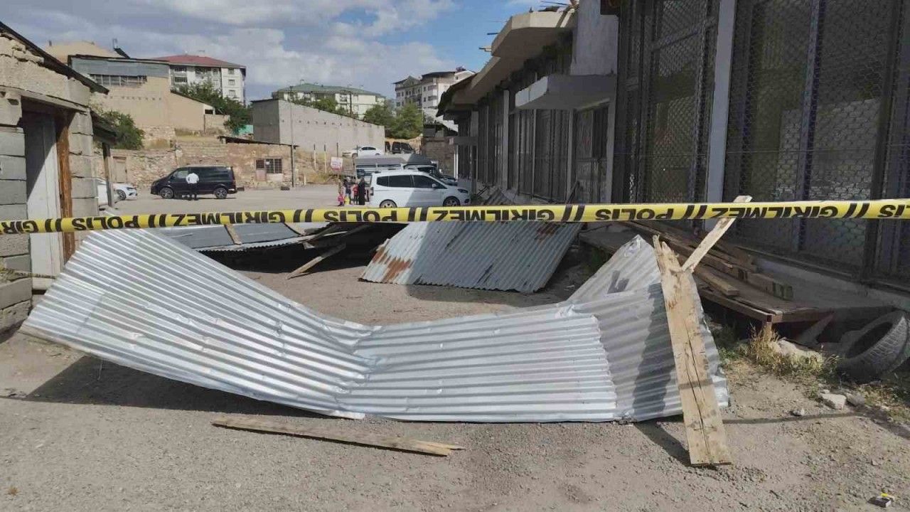 Van’ın Erciş ilçesinde etkili olar rüzgar nedeniyle bir binanın uçan çatısı 3 araca hasar verdi.