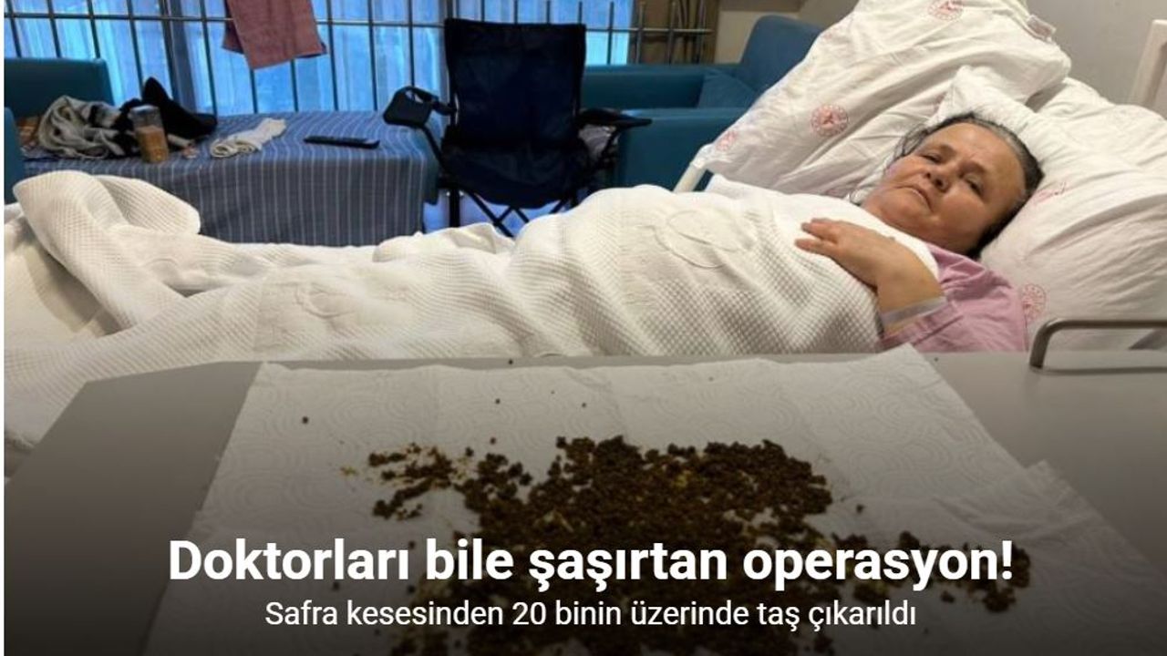 Manisa’nın Soma ilçesinde karın ağrısı şikayetiyle hastaneye başvuran 70 yaşındaki Ayşe Çobanlar’ın safra kesesinden 20 binin üzerinde taş çıkarıldı. Operasyonu gerçekleştiren Opr. Dr. Muhammet Burak Koyuncu, vakayı hem hastalar hem de sağlık çalışanları açısından oldukça nadir görülen bir durum olarak değerlendirirken ve dikkat çekici olarak değerlendirdi.