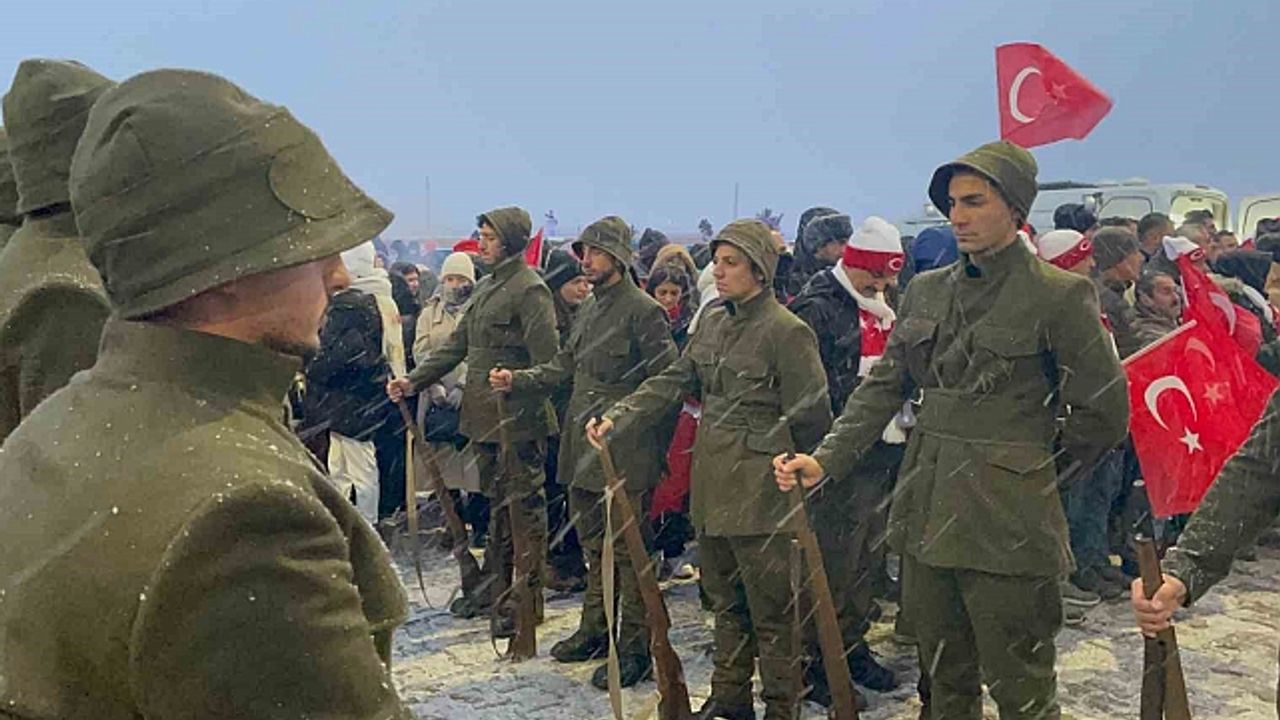 Sarıkamış Harekatı'nın 110'uncu yılında üniversite öğrencileri, sıfırın altında 12 derecede kar yağışı altında saygı nöbeti tutarak şehitleri andı.