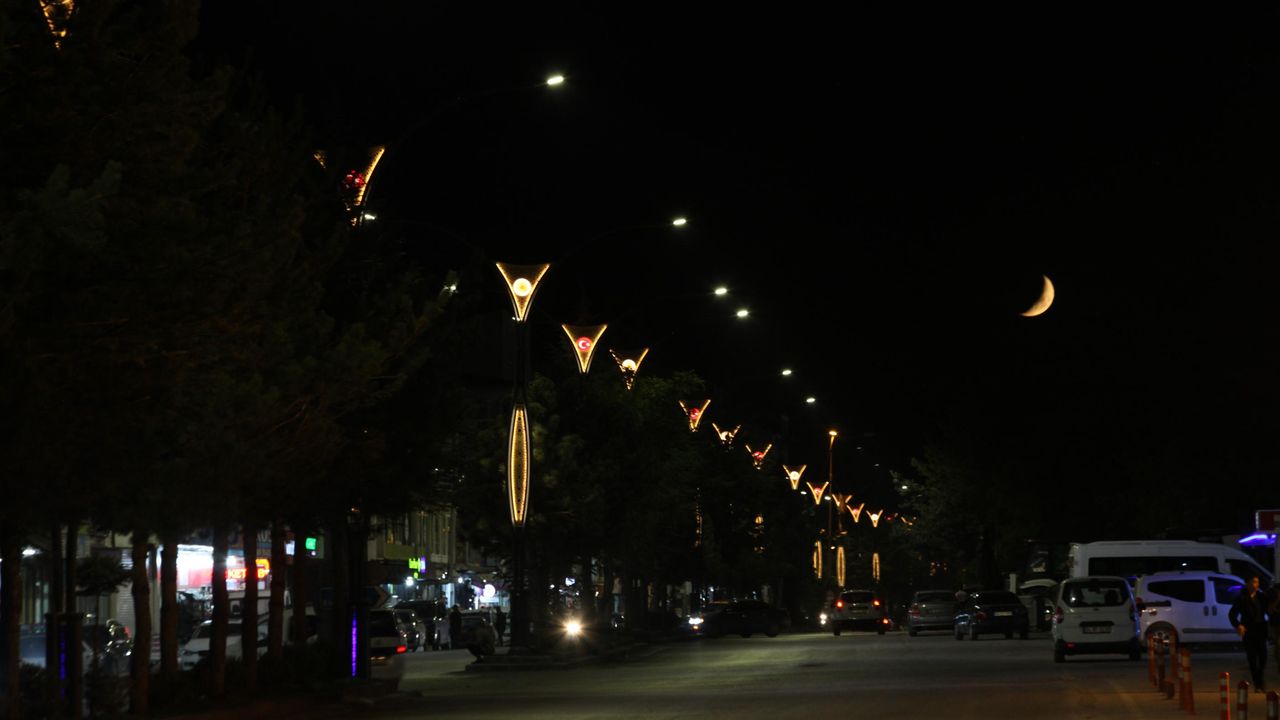 Kent merkezinden çekilen fotoğraflarda, Hilal Ay’ın parlak görüntüsüyle birlikte Ahlat’ın gece silueti adeta bir görsel şölen sundu.