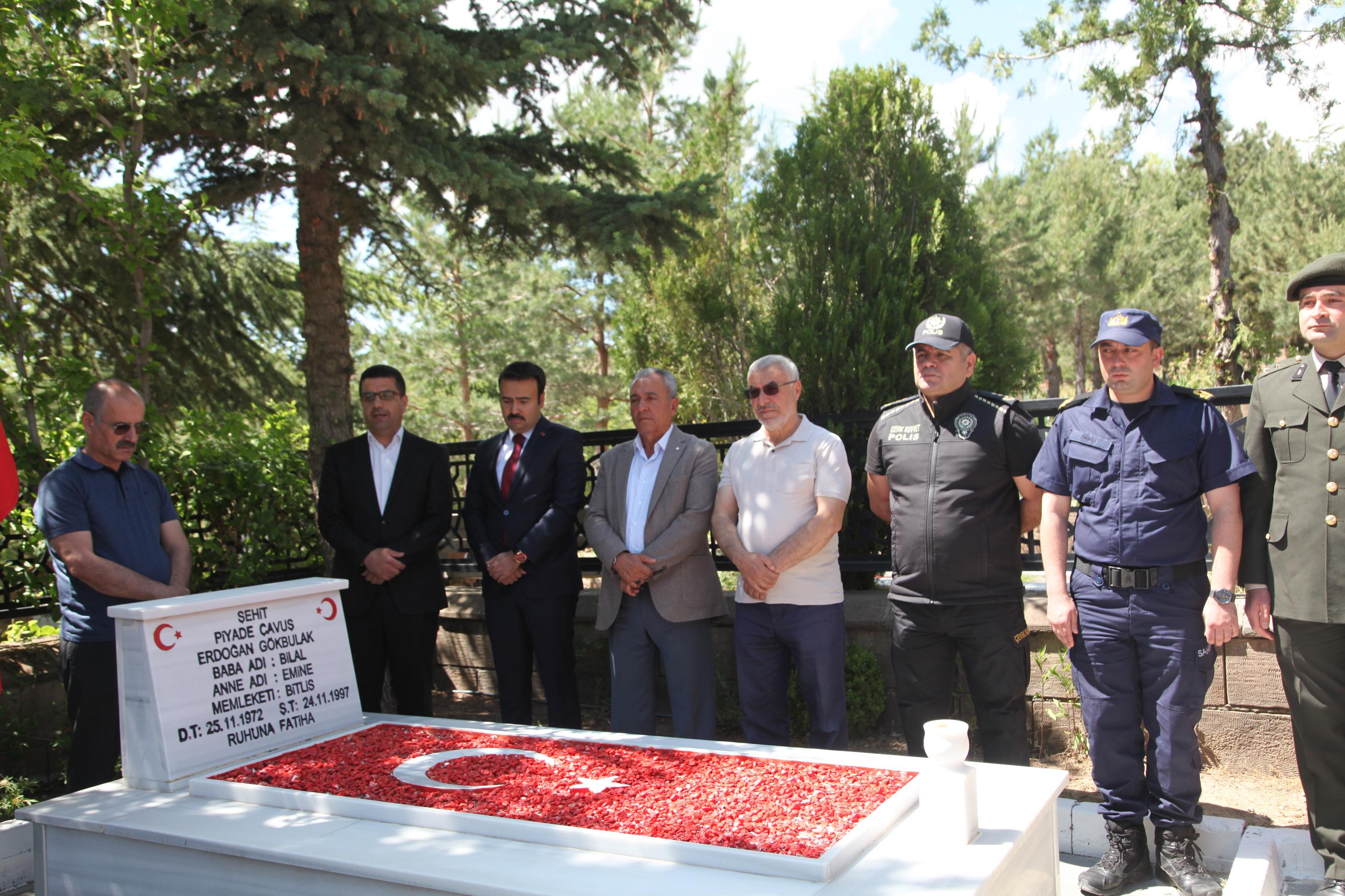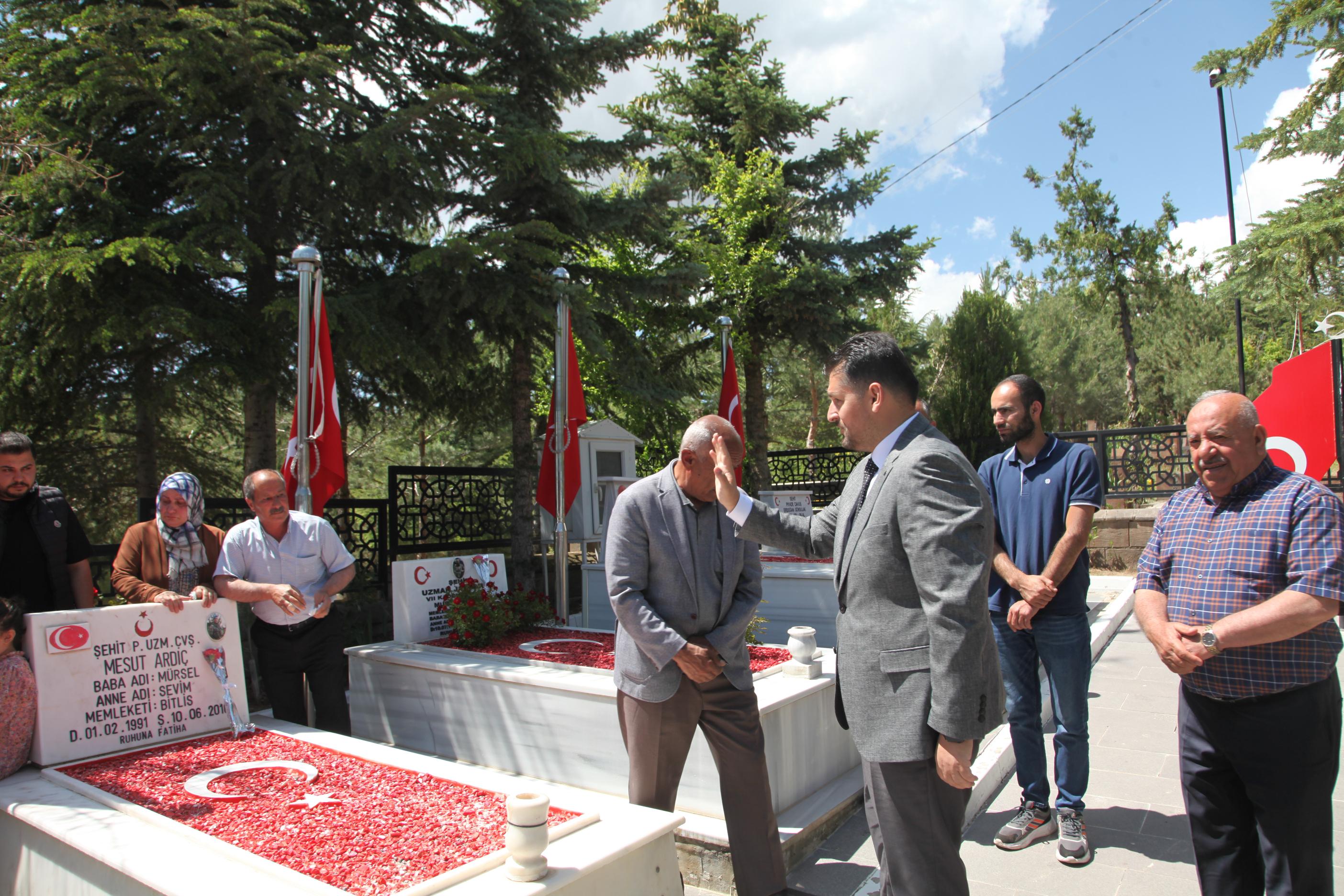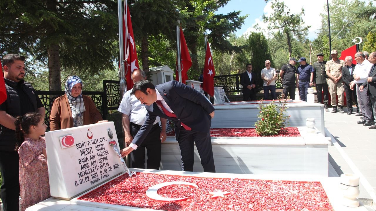 Program kapsamında Ahlat Kaymakamı Batuhan Bingöl, şehitlerin kabirlerine karanfil bıraktı.