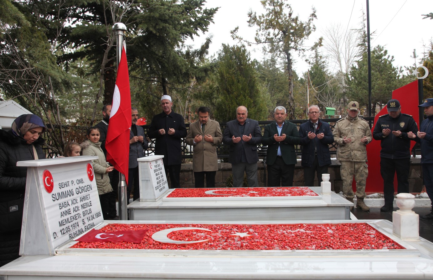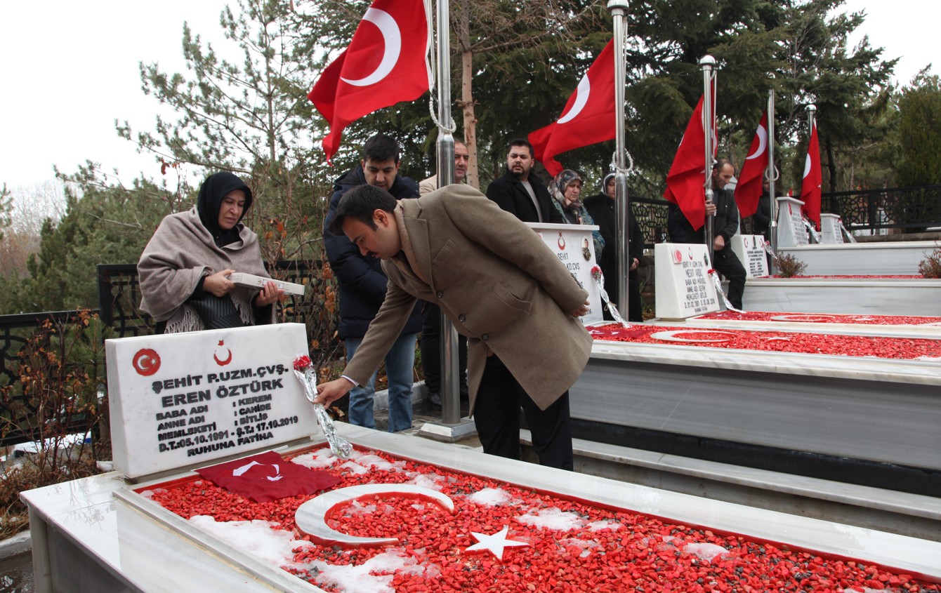 Daha sonra şehit mezarlarına karanfil bırakan Ahlat Kaymakamı Batuhan Bingöl, şehit aileleri ile sohbet etti.