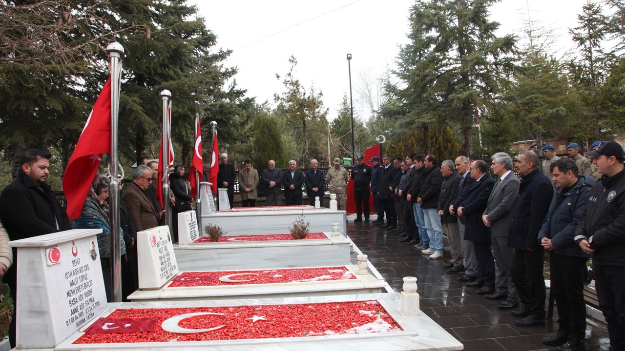 Ahlat Şehitliği'nde gerçekleşen anma töreninde Kur'an-ı Kerim okunarak, dualar edildi.