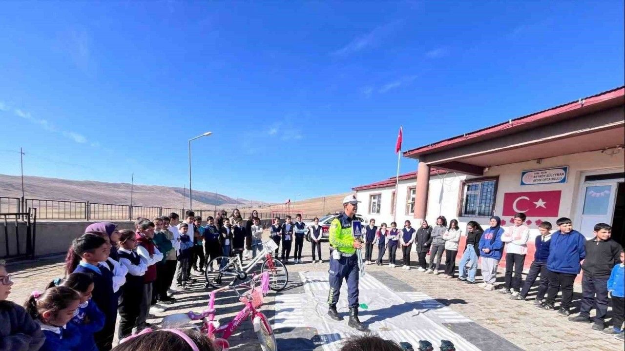 Kars’ın Selim ilçesinde İl Jandarma Komutanlığı’na bağlı, Trafik Timleri tarafından Beyköy köyü Süleyman Aydın Ortaokulu öğrencilerine; bisiklet kullanırken dikkat edilecek hususlar, yaya ve okul geçidinde uyulması gereken kurallar hakkında bilgilendirme yapıldı.