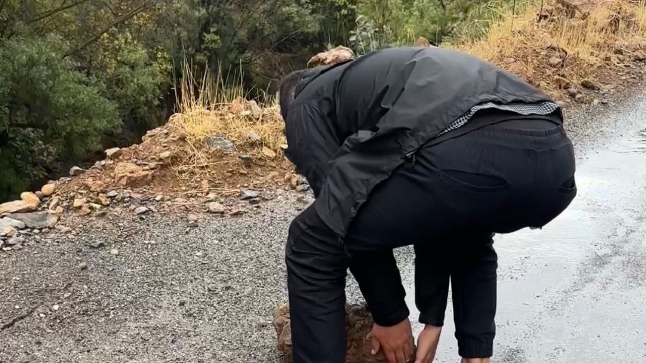 Dün başlayan yoğun yağışlar hayatı olumsuz yönde etkilerken, bölgede bir çok noktada kar yağışı da etkili oldu. Şemdinli-Derecik karayolunda etkili olan yağış etkisiyle dağlardan çok sayıda kaya parçası yola düştü. Gezi ve okul programları için Derecik ilçesine giden Yüksekova Ekoloji Kültürel ve Dağcılık Spor Kulübün Başkanı Suat Öztekin, araçtan inerek kaya parçaları tek tek kaldırıp yol kenarına bıraktı.