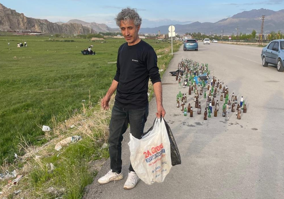 Tarihi ve doğal güzellikleriyle bilinen Van Kalesi çevresine gelişigüzel atılan yüzlerce cam şişe, çevre gönüllüsü Yavuz Taşoğlu’nun tepkisine neden oldu. Piknik için ailesiyle bölgeye gelen Taşoğlu, eline poşet alarak çevredeki atıkları toplamaya başladı. Topladığı onlarca alkol şişesini ise dikkat çekmek amacıyla kaldırım kenarına dizdi.