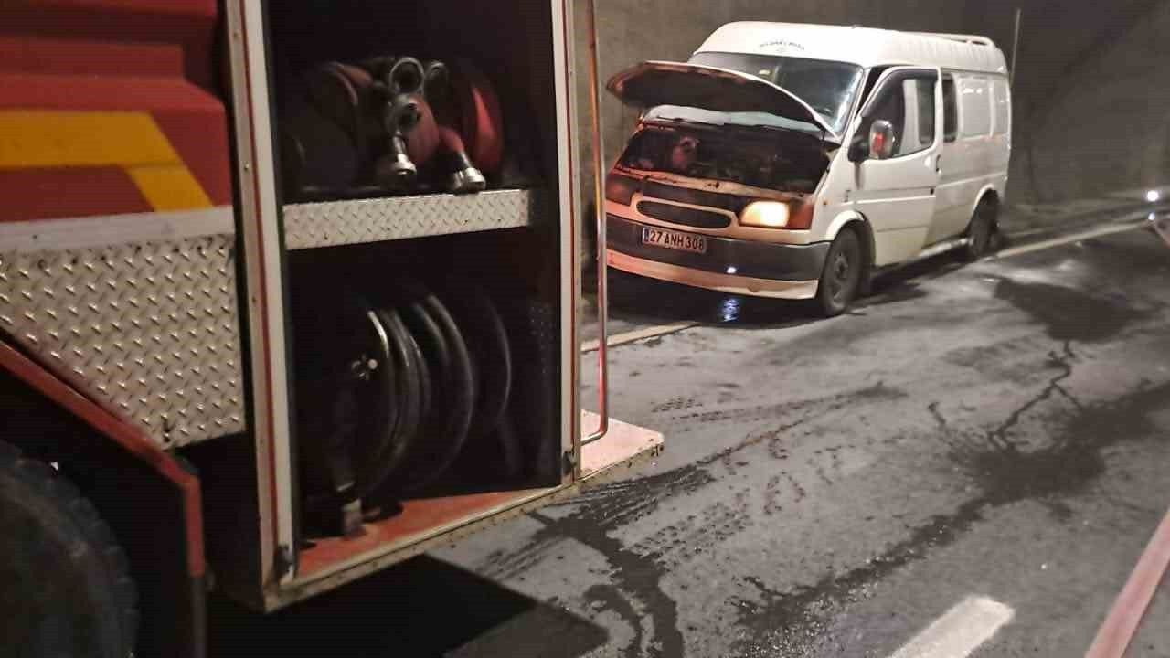 Malatya’da tünel içerisinde seyir halindeyken alev alan minibüs paniğe neden oldu.
