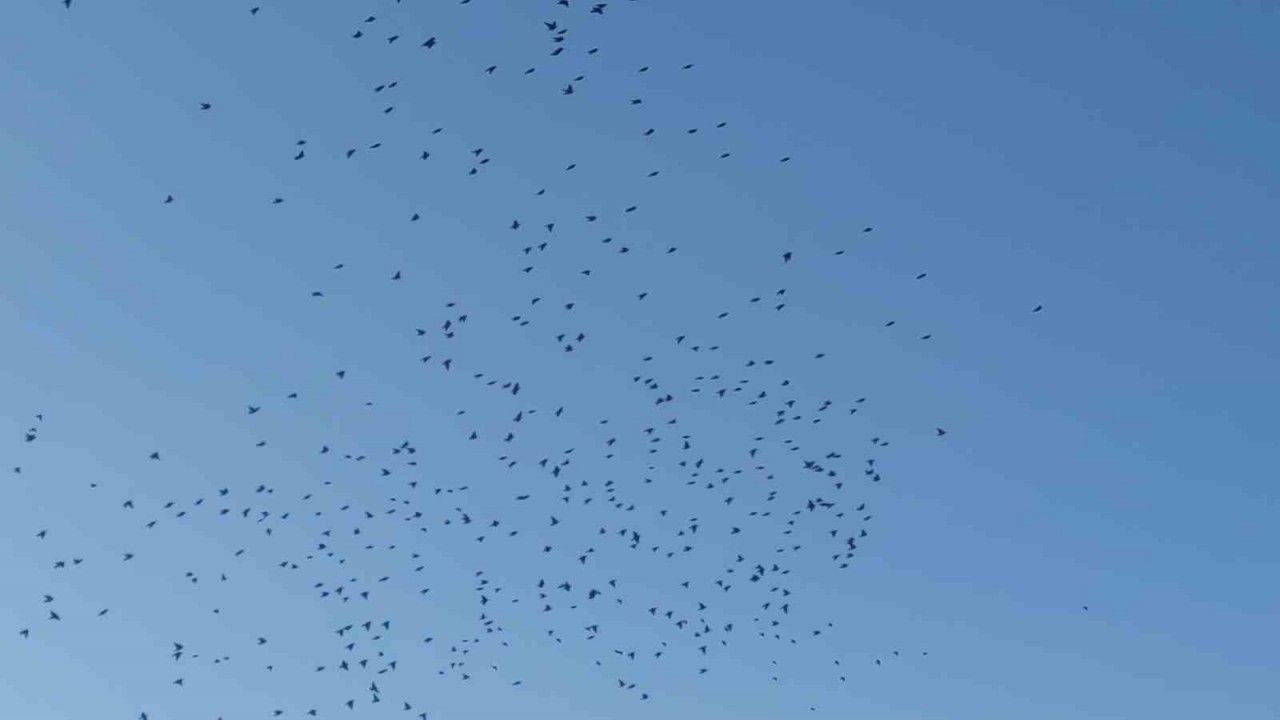 Van’da yüzlerce sığırcık kuşunun gökyüzündeki dansı, izleyenleri mest etti.
