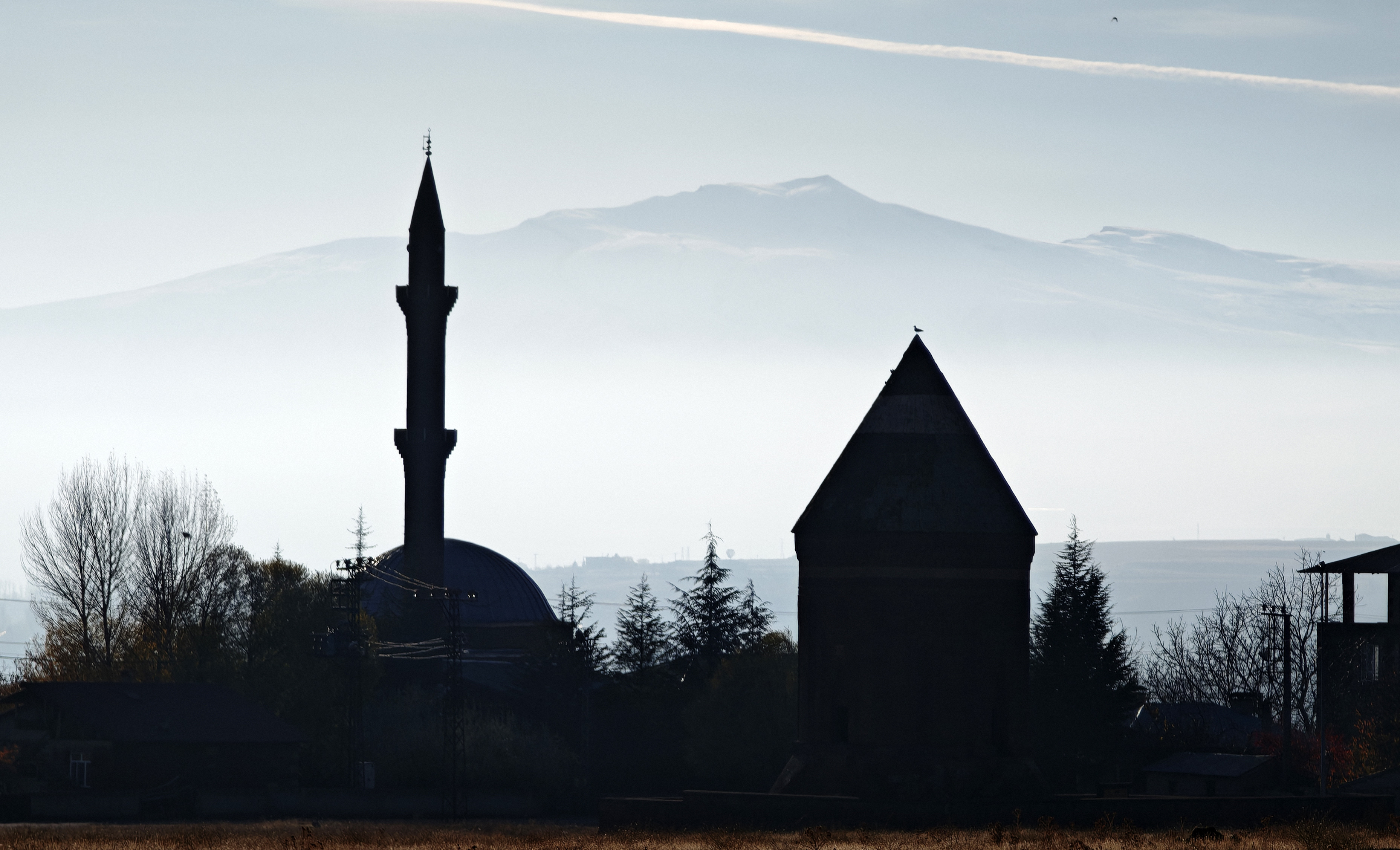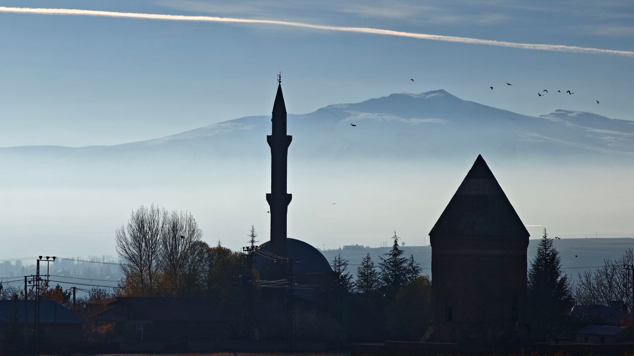 Ahlat Fotoğrafçılar Derneği (AHFOD) Başkanı Özkan Olcay, ilçenin simge yapıları arasında yer alan Ulu Kümbet ve İyiler Camii’ni, gün batımına yakın saatlerde sislerin arasından beliren ve beyaz örtüye bürünen Nemrut Dağı’yla birlikte fotoğrafladı.Sisli havanın oluşturduğu doğal filtre ile tarihi yapılar ve karla kaplı dağ silüeti aynı karede birleşerek adeta kartpostallık görüntüler ortaya çıkardı.