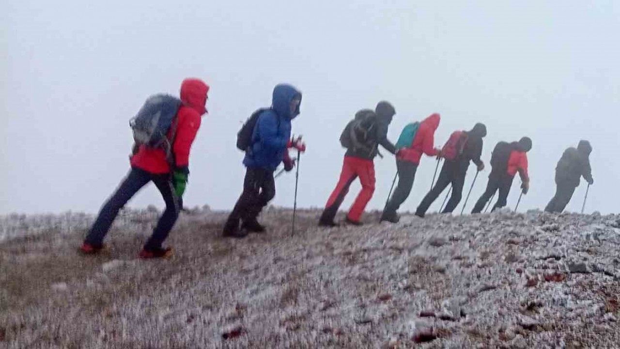 Ağrı’nın Doğubayazıt ilçesinde bulunan 5 bin 137 rakımlı Ağrı Dağı’nın yüksek kesimlerinde ve zirvesinde eylül ayına rağmen kar yağışı, fırtına ve yoğun sis etkisini sürdürüyor. Birçok dinde kutsal kabul edilen, terörden arındırıldıktan sonra yeniden tırmanışa açılan ve yılın her döneminde dağcı gruplarını ağırlayan Ağrı Dağı’na zirve tırmanışı gerçekleştirmek isteyen bir grup dağcı, yerel rehber Cuma Saltik öncülüğünde kar, tipi ve şiddetli rüzgâra rağmen tırmanış yaptı.