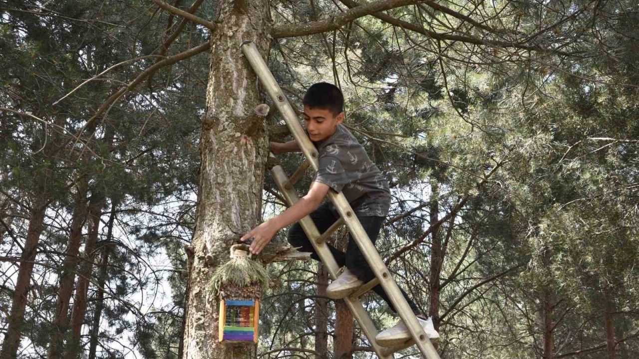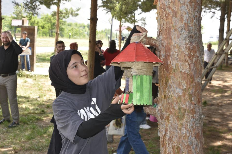 Öğrenciler yaptıkları kuş evlerini tek tek ağaçlara astı. Belediye Başkanı Nesrullah Tanğlay ise öğrencilere günün anısına küçük hediyeler verdi.