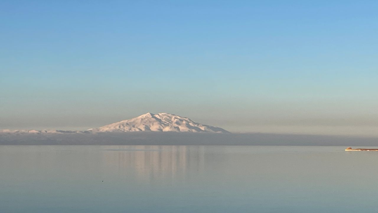 Sabah saatlerinde etkili olan sis, Süphan Dağı’nın eteklerini kaplarken, ortaya kartpostallık manzaralar çıktı. Van Gölü kıyısındaki Tatvan’dan da görülen sis tabakası, dağın siluetiyle birleşerek görsel şölen oluşturdu.