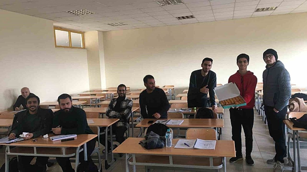 Suriye'de muhaliflerin rejim güçlerini yenilgiye uğratarak kontrolü ele geçirmesinin ardından Fırat Üniversitesinde okuyan Suriyeli öğrenci, sınıftaki arkadaşlarına tatlı dağıttı.