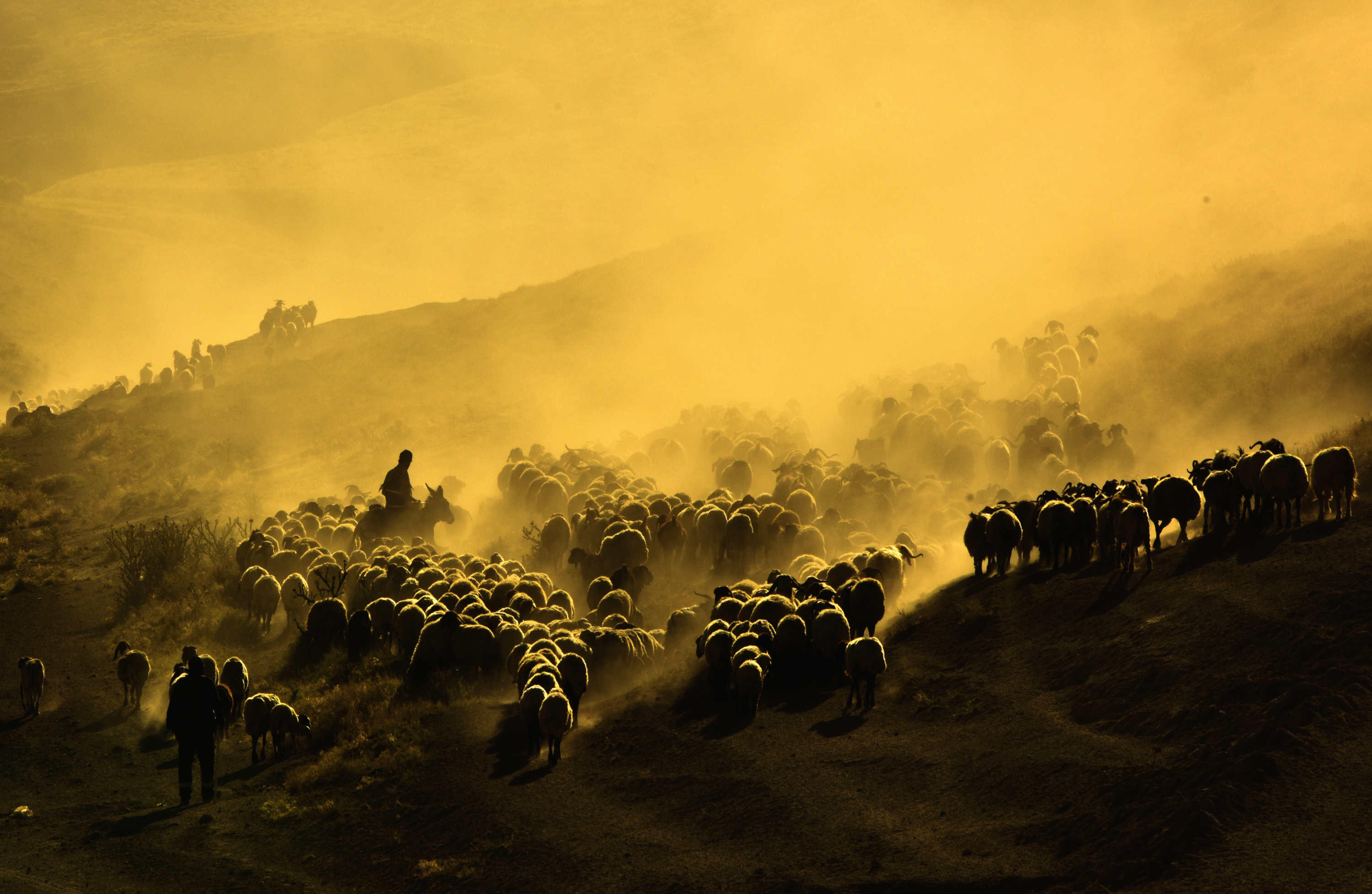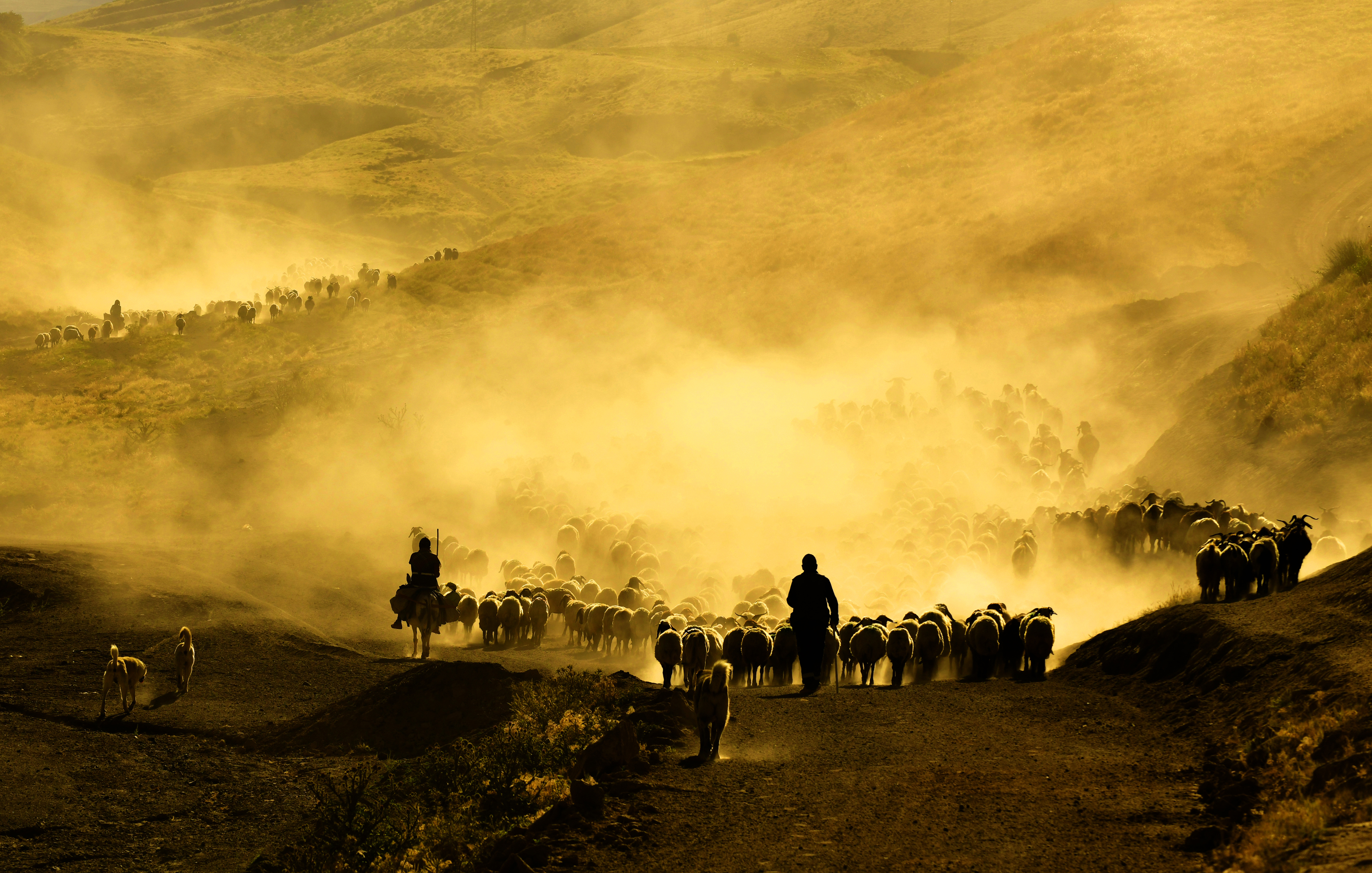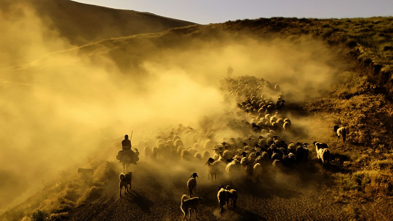 Yüzlerce koyun, süt sağımı için çobanlar eşliğinde köye getirilirken, sağım işleminin ardından gün batımına doğru tekrar dağlık bölgelere doğru yola çıkıyor. Sönmüş bir volkan olan Nemrut Dağı’nın eteklerine doğru başlayan bu tozlu yolculuk, adeta doğayla iç içe bir görsel şölene dönüşüyor.