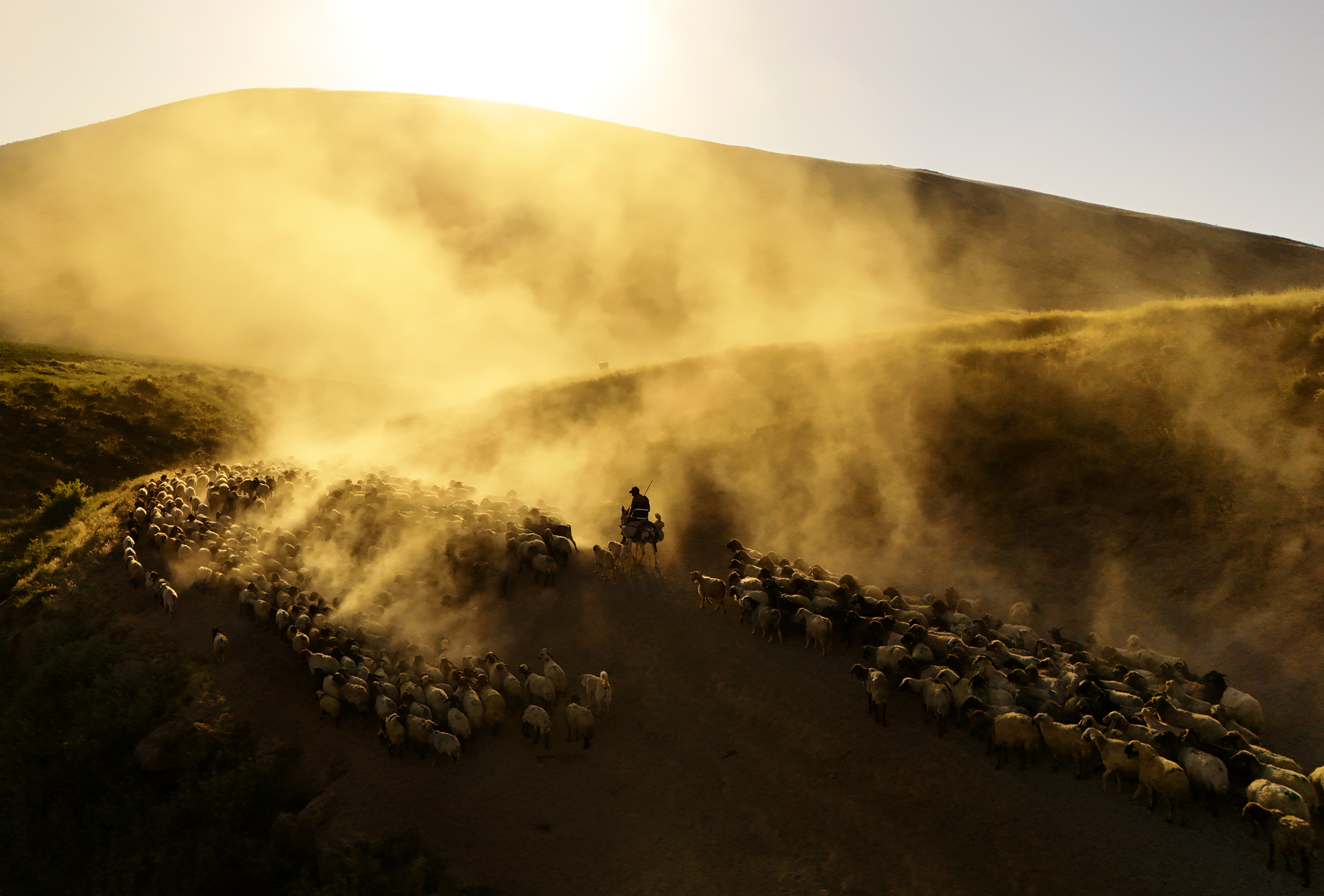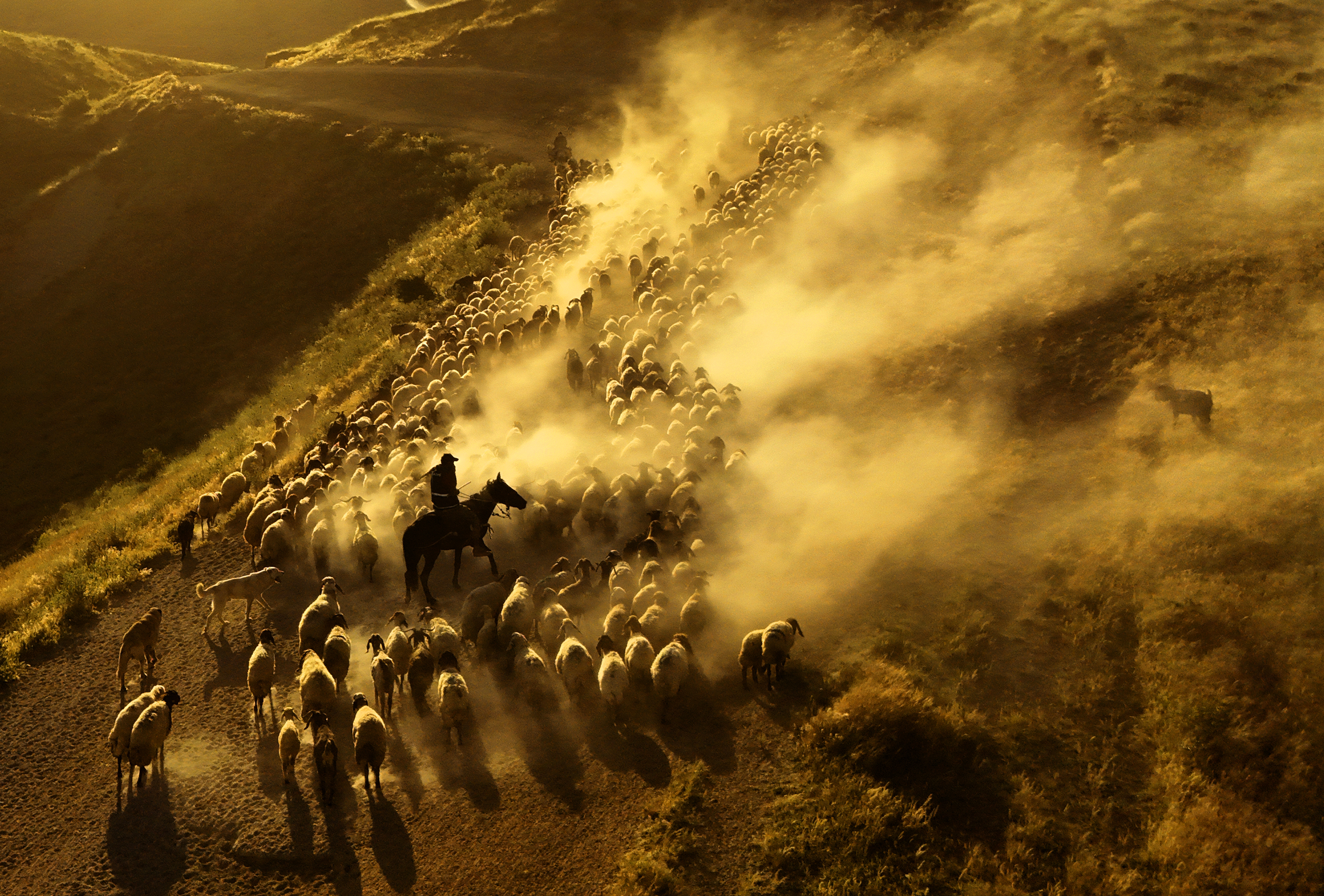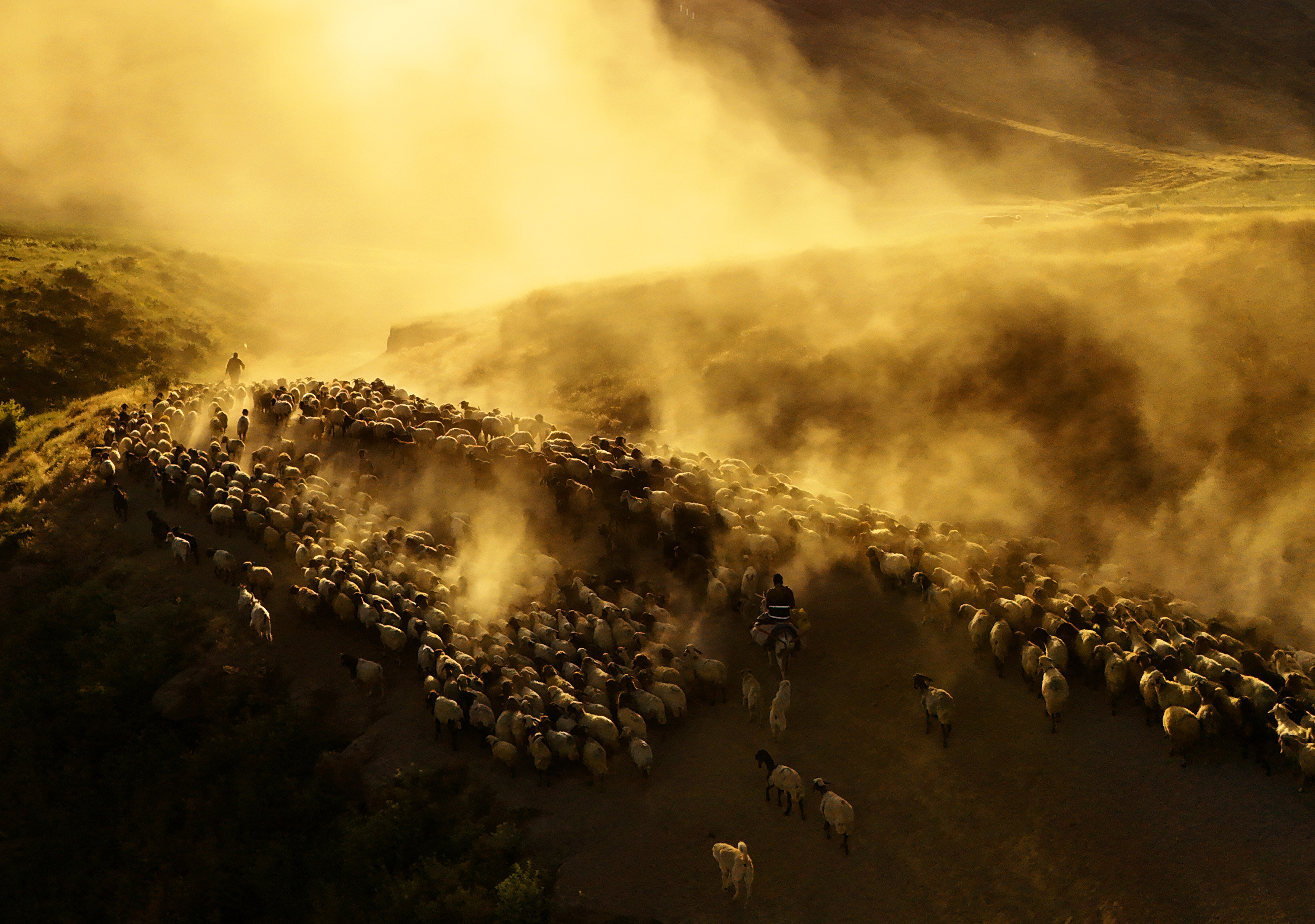 Yüzlerce koyun, süt sağımı için çobanlar eşliğinde köye getirilirken, sağım işleminin ardından gün batımına doğru tekrar dağlık bölgelere doğru yola çıkıyor. Sönmüş bir volkan olan Nemrut Dağı’nın eteklerine doğru başlayan bu tozlu yolculuk, adeta doğayla iç içe bir görsel şölene dönüşüyor.