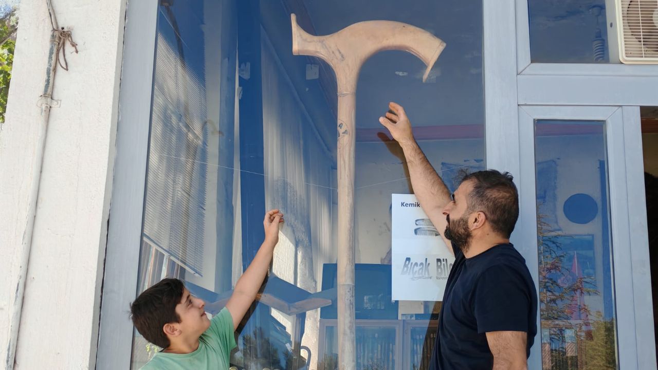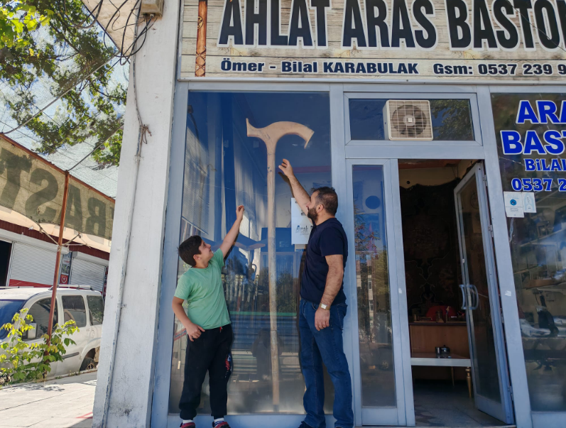 Ahlatlı baston ustası Bilal Karabulak’ın ceviz ağacından yaptığı dev baston, yerli ve yabancı turistlerin ilgisini çekiyor.