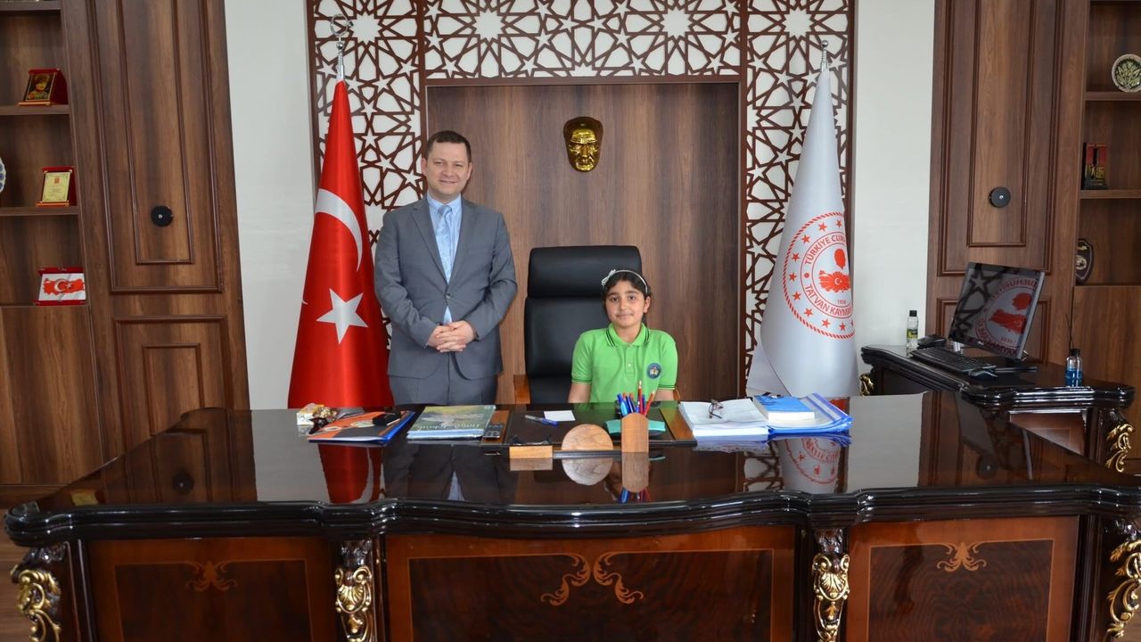 Tatvan Kaymakamı Yiğit Yaşar Demirer, makam koltuğunu Tatvan Kültür İlkokulu 4. sınıf öğrencisi Ferda Sümeyra Aktan’a devretti.