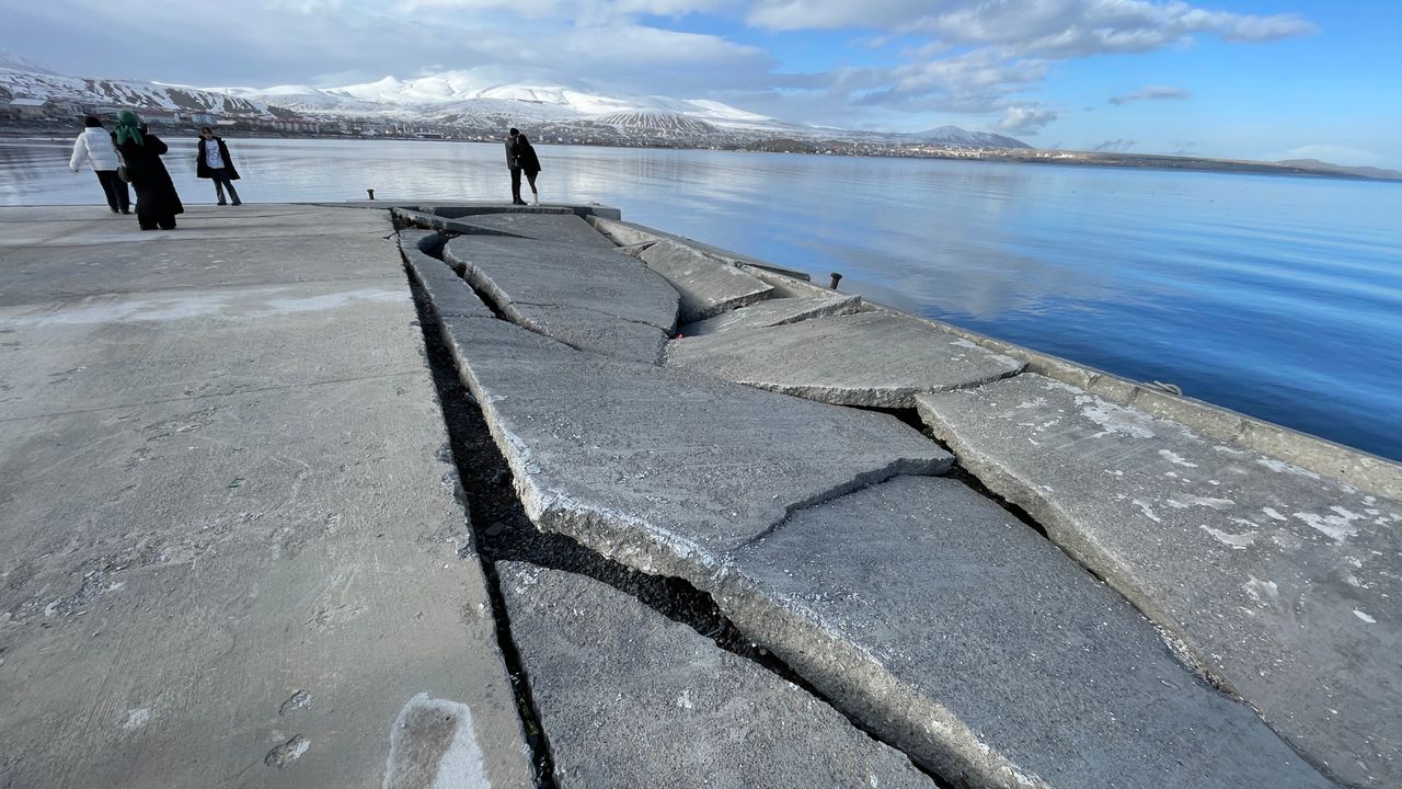Bitlis’in Tatvan ilçesinde sahil iskelesine yapılan ek bölümün çökmesi tehlike oluşturdu.