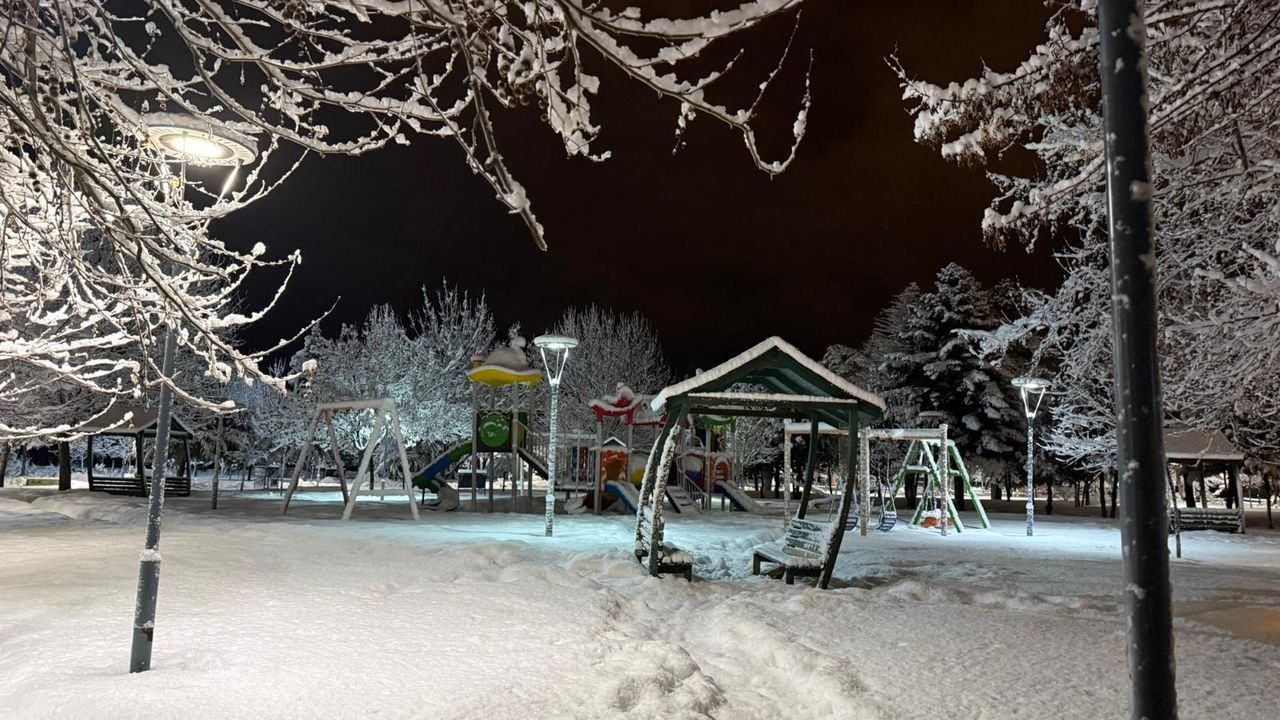 Gece saatlerinde başlayan ve aralıklarla etkisini sürdüren kar yağışı, sabahın ilk ışıklarıyla birlikte Tatvan sahilinde görsel bir şölen oluşturdu. Karla kaplanan ağaç dalları, yürüyüş yolları ve yeşil alanlar beyaz örtüyle kaplanırken, Van Gölü’nün mavisiyle oluşan kontrast dikkat çekti.