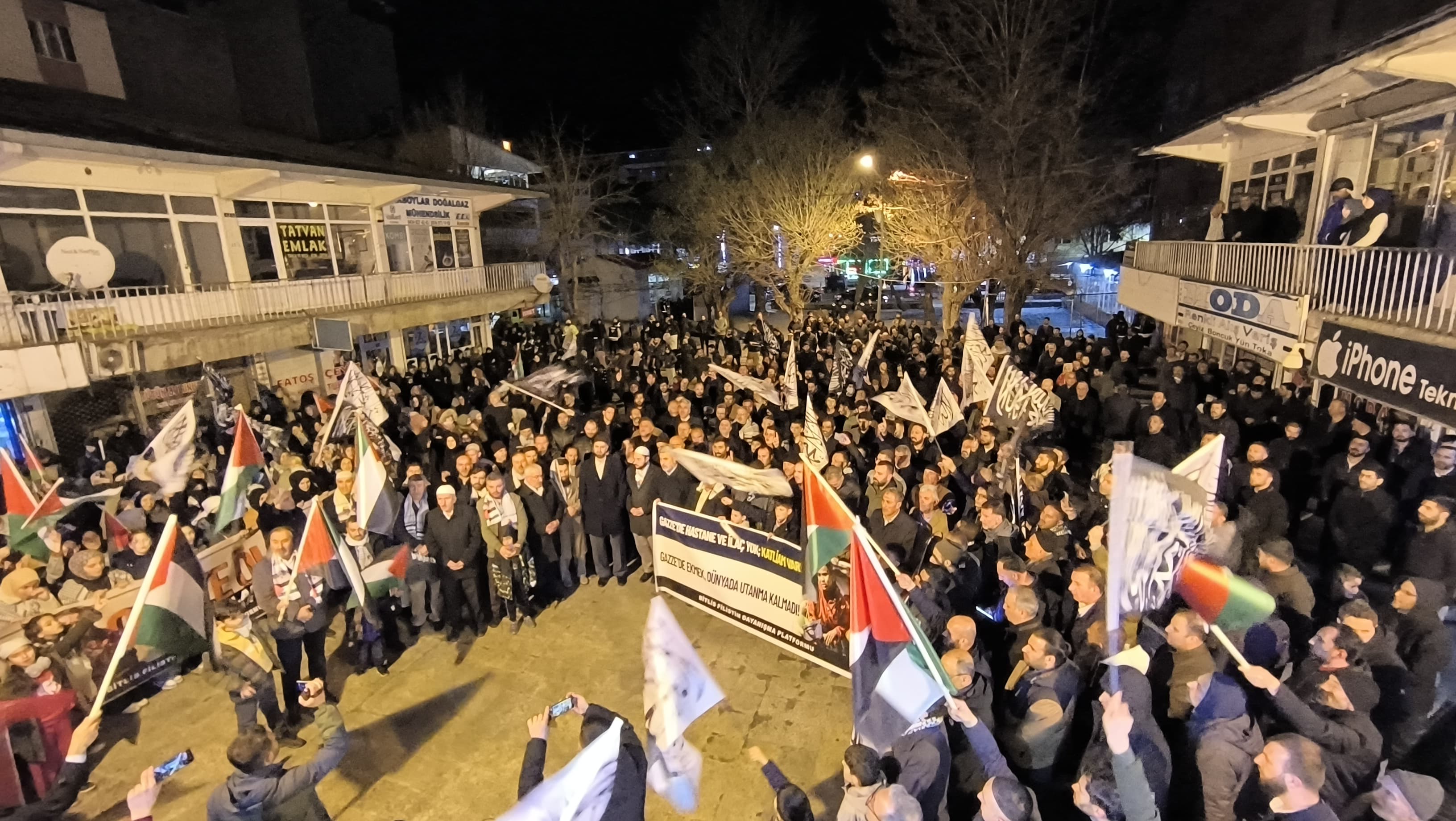 Sivil Toplum Kuruluşlarının (STK) bulunduğu kalabalık bir grup, dün yatsı namazının ardından Filistin’e destek amacıyla yürüyüş düzenlendi.