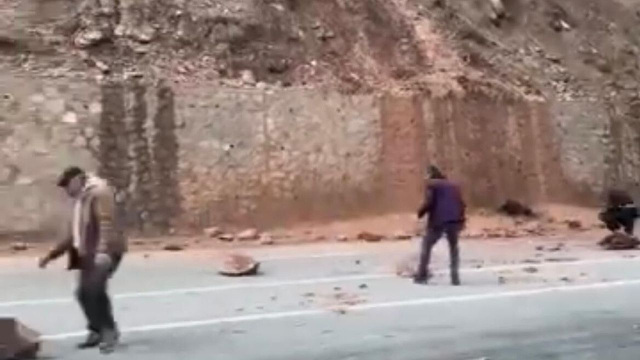 Yola savrulan taşlar nedeniyle sürücüler ilerlemekte güçlük çekerken, bazı vatandaşlar araçlarından inerek yolu kapatan kaya ve taş parçalarını kendi imkanlarıyla yol kenarına taşıdı.