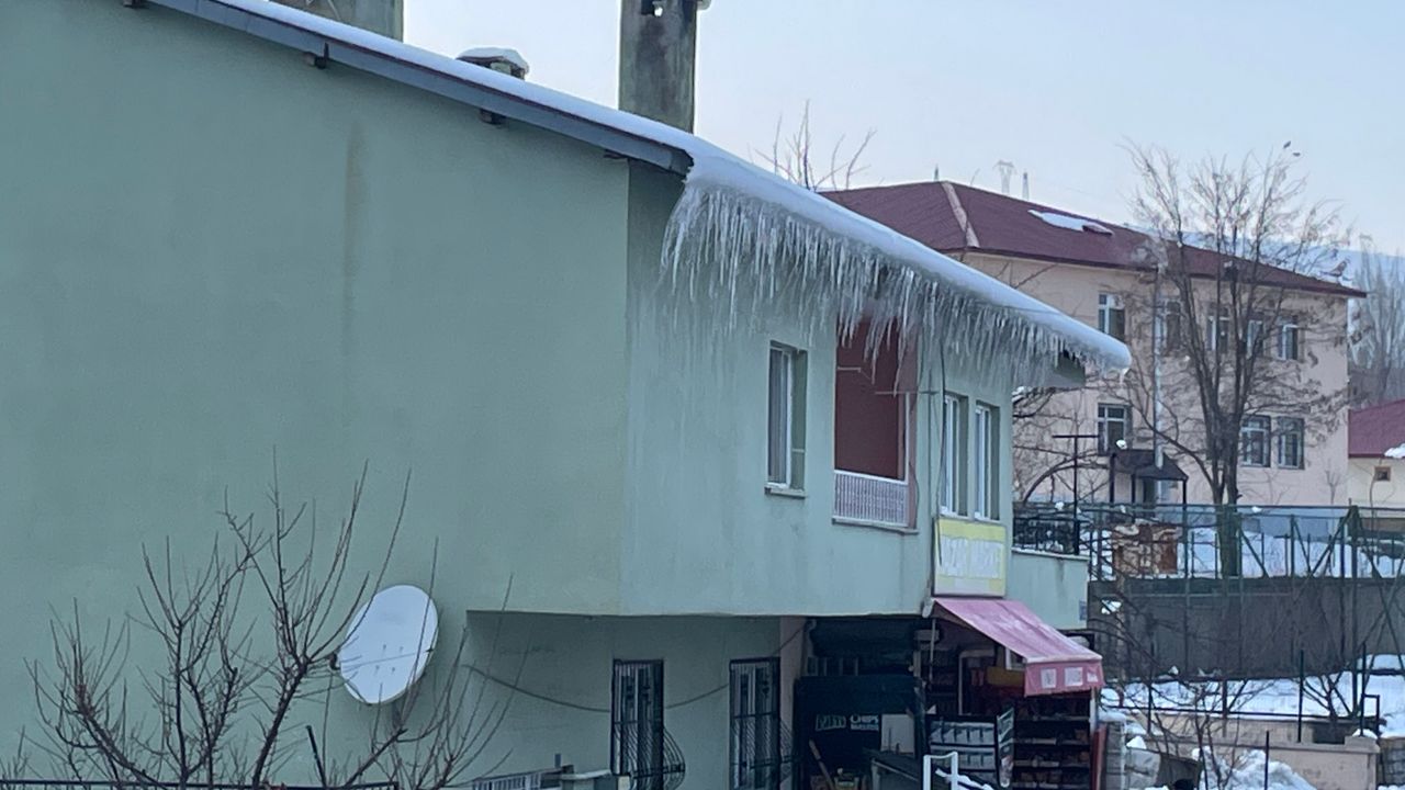 Bitlis’in Tatvan ilçesinde etkili olan soğuk hava nedeniyle bina çatıları ve saçaklarda oluşan buz sarkıtları, vatandaşlar için tehlike oluşturuyor.