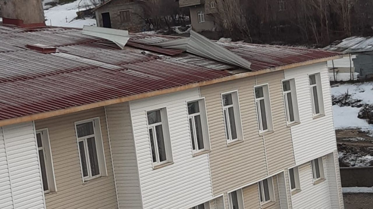Gece saatlerinde etkisini artıran şiddetli rüzgar, köyde bazı yapılarda hasara yol açarken, ilkokul binasının çatısı büyük ölçüde zarar gördü.