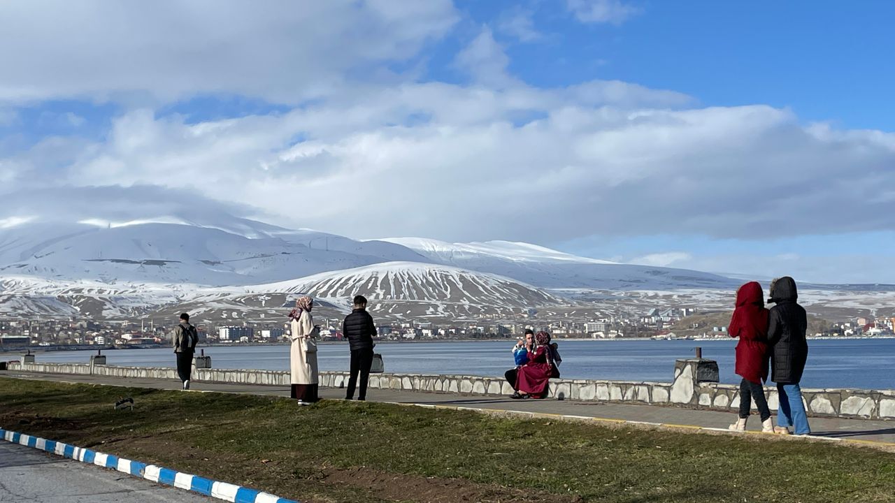 Bitlis’in Tatvan ilçesinde havaların ısınmasıyla birlikte vatandaşlar pazar gününü sahilde geçirdi.