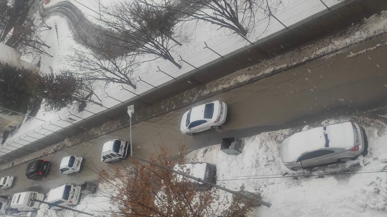Bitlis’in Tatvan ilçesinde etkili olan karla karışık yağmur nedeniyle bazı sokaklar suyla dolarak adeta gölete döndü.