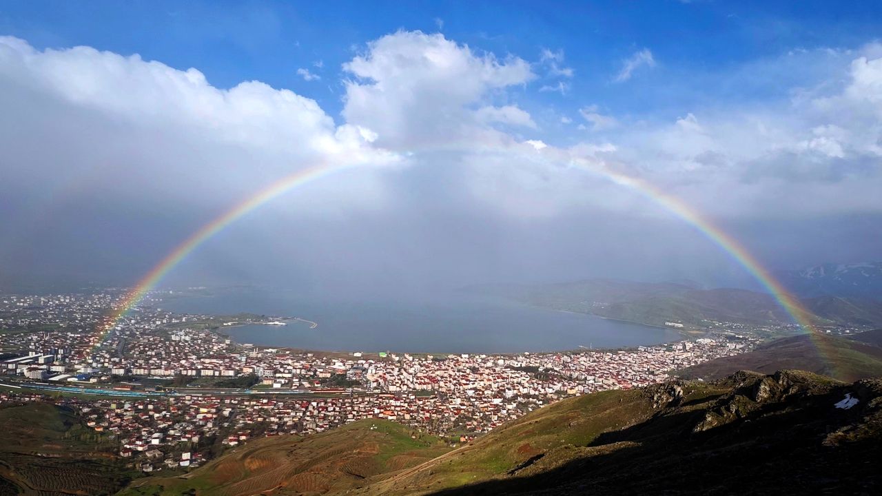Tatvan ilçesinde yağmur sonrası ortaya çıkan gökkuşağı ilçenin hakim bir noktasından kaydedildi. Bitlis Eren Üniversitesi (BEÜ), Öğretim Görevlisi ve doğa fotoğrafçısı Oktay Subaşı tarafından Tatvan’ın Taşlıtepe mevkiinde yüksek rakımdan çekilen görüntülerde gökkuşağının Tatvan’ın üzerinde muhteşem bir şekilde kaydı alındı. Gökkuşağı’nın Tatvan manzarasıyla ortaya çıkardığı görsel şölen büyük beğeni topladı.