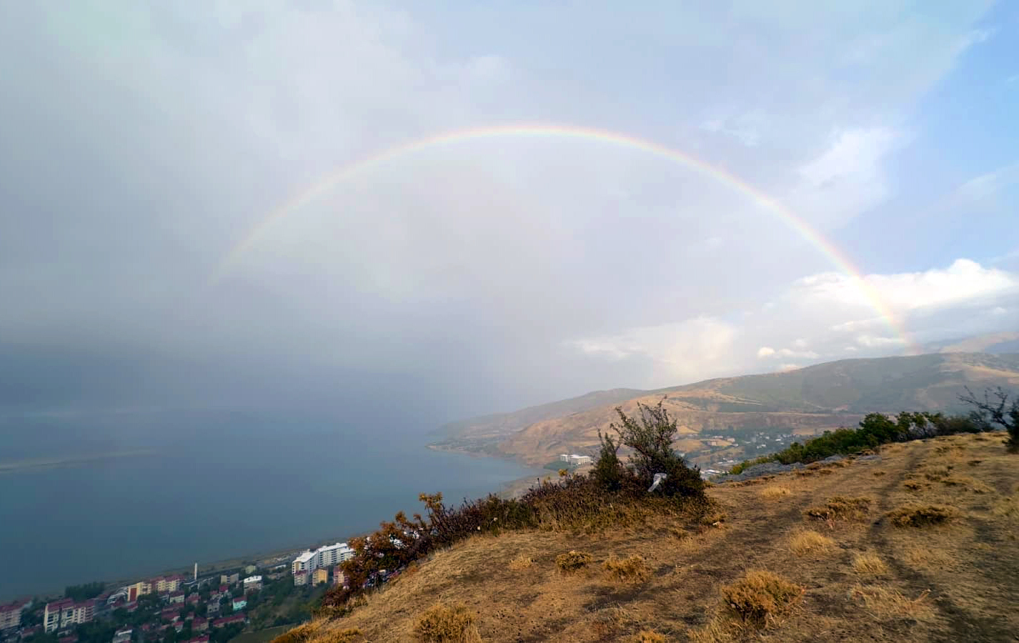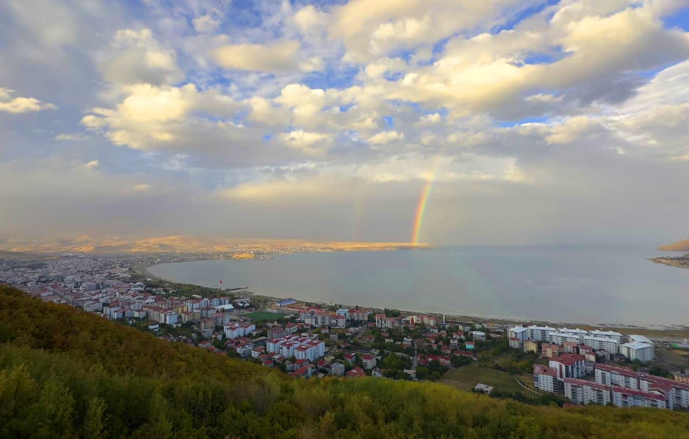 Doğa fotoğrafçıları Oktay Subaşı ve İskender Selçuk tarafından kaydedilen karelerde, gökkuşağının bir ayağının Tatvan ilçe merkezine, diğer ayağının ise Van Gölü üzerine düştüğü görülüyor. Renk cümbüşüyle Tatvan manzarasını süsleyen gökkuşağı, izleyenlerin beğenisini topladı.